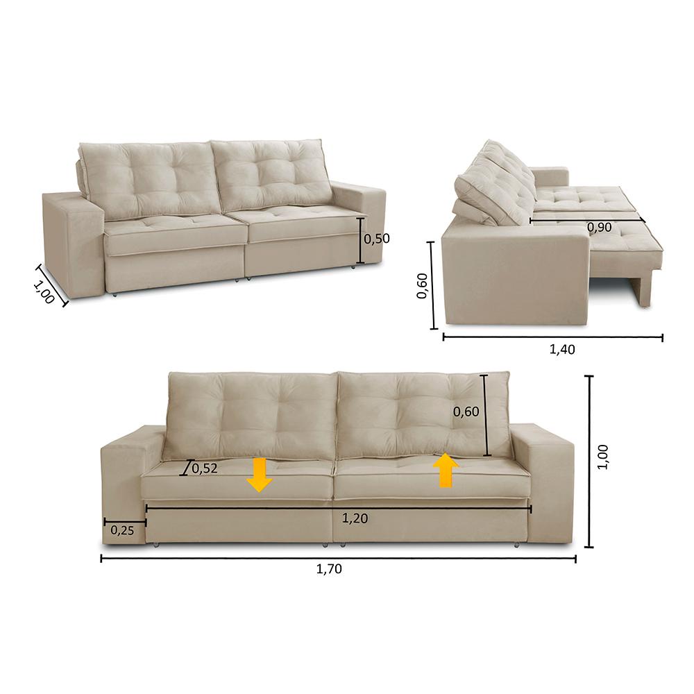 Sofá Retrátil e Reclinável 2 lugares 1,70m com Molas Marcela Suede Bege Adonai Estofados