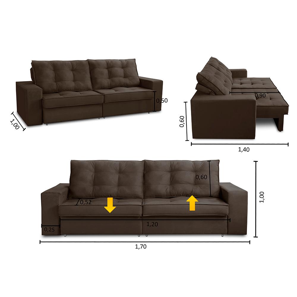Sofá Retrátil e Reclinável 2 lugares 1,70m com Molas Marcela Suede Marrom Adonai Estofados