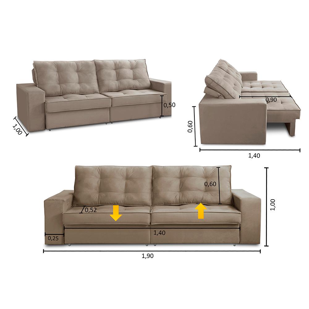 Sofá Retrátil e Reclinável 2 lugares 1,90m com Molas Marcela Suede Cappuccino Adonai Estofados