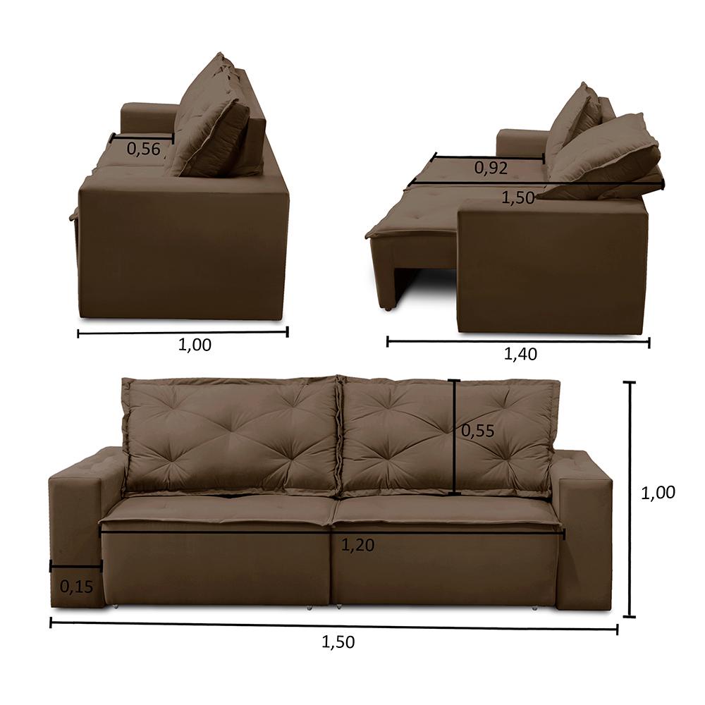 Sofá Retrátil e Reclinável 2 lugares com Molas 1,50m Ana Suede Marrom Adonai Estofados