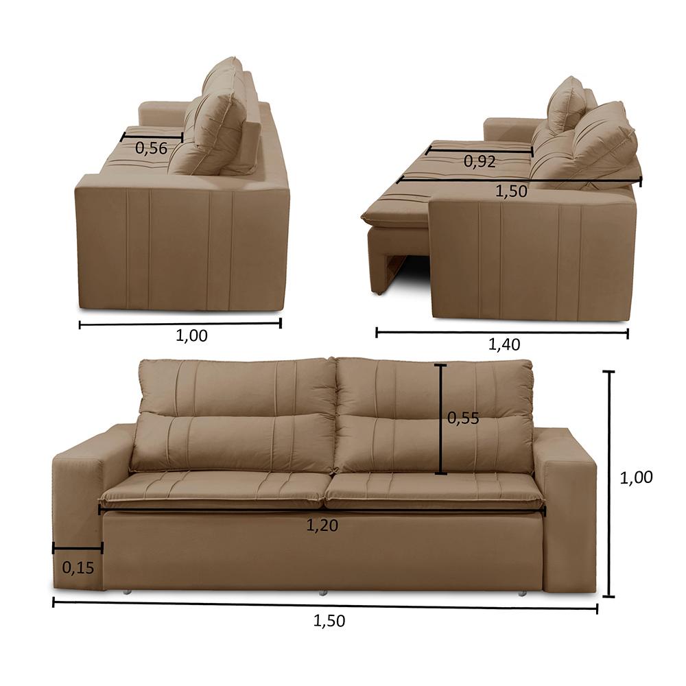 Sofá Retrátil e Reclinável 2 lugares com Molas 1,50m Ester Suede Cappuccino Adonai Estofados