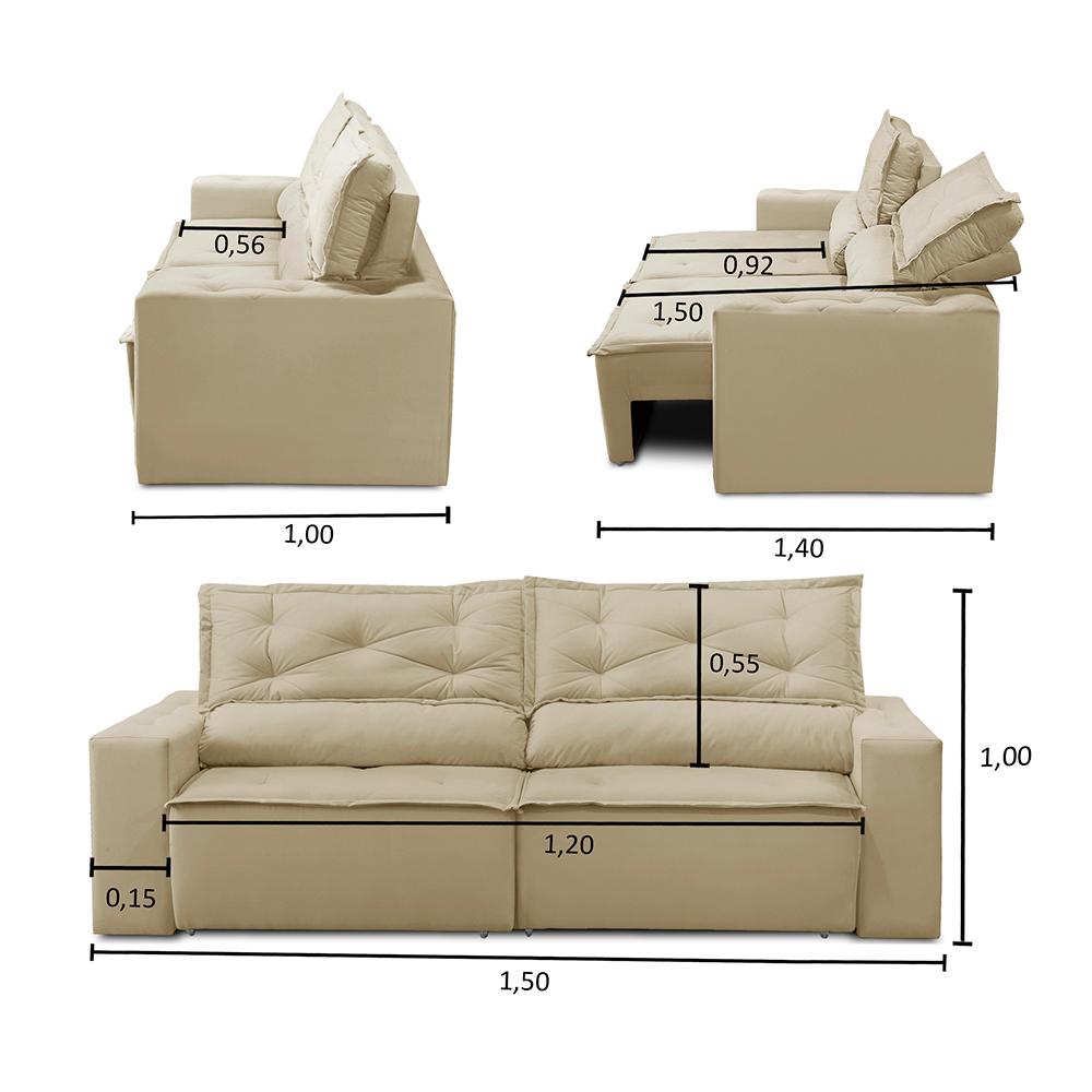 Sofá Retrátil e Reclinável 2 lugares com Molas 1,50m Livia Suede Bege Adonai Estofados