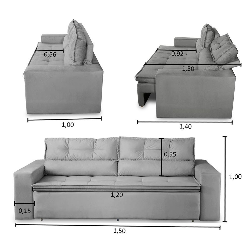 Conforto, qualidade e praticidade, é o que você vai encontrar no Sofá Vegas, um produto pensado para juntar essas 3 qualidades em um só. O produto que além de tudo isso vai deixar seu ambiente muito mais bonito e elegante, a peça para levar sua sala a outro nível.. Medidas do Produto Montado: - Largura: 1,50m - Profundidade: 1,00m - Altura total: 1,00m - Braços: 0,15cm - Profundidade de assento: 0,56cm - Profundidade de assento aberto: 0,92cm - Altura do encosto: 0,55cm - Largura de assento: 1,20m - Altura do chão ao assento: 0,47cm - Profundidade total aberto: 1,40m - Profundidade total aberto ( com o encosto totalmente reclinado ): 1,50m Especificações Técnicas: Encosto:Preenchido com fibra siliconada e flocos que vão garantir alta maciez e conforto, ele possui uma catrata com 3 estágios para que possa se acomodar da maneira que preferir. Assento:Feito com espuma D-28 com percintas elásticas de 5mm e Molas, o assento é retrátil que permite você utilizar o sofá com as pernas esticadas e ter todo o conforto que ele possa te proporcionar. Estrutura: Sua estrutura é composta por madeira de eucalipto 100% reflorestada, toda ela é fixada por grampos galvanizado que vão fazer todo o trabalho de manter a estrutura firme e com alta qualidade. Informações relevantes: - Esse produto suporta de 110 a 130kg por pessoa. - Acomoda até 2 pessoas tranquilamente. **Este produto vai embalado em apenas 1 Volume que passa tranquilamente nas portas convencionais. Garantia 90 dias após o recebimento do produto. Instruções de Limpeza: Utilizar um pano limpo e seco. Não limpar com escovas ou produtos abrasivos. Observações importantes: - As imagens são meramente ilustrativas, não acompanham objetos de decoração e eletros; - As cores dos produtos podem sofrer alterações dependendo do seu monitor ou lote do tecido. - Todos os produtos vão embalados com total segurança; - Confira a embalagem e o poduto no ato da entrega, caso o produto esteja avariado recuse imediatamente, coloque uma observação no verso da nota e entre em contato conosco. - Não nos responsabilizamos no ato da entrega por montagens, desmontagens, instalações de produtos, nem utilização de guinchos ou equipamentos similares para acesso a pisos superiores em apartamentos. - Confira as dimensões do produto no momento da compra e certifique-se de que passará normalmente por escadas, elevadores, portas e corredores. Observando as orientações acima, evita-se futuros desagrados ou imprevistos com a entrega do produto. CASO TENHA, A MONTAGEM DO PRODUTO É DE RESPONSABILIDADE DO COMPRADOR, NÃO EFETUAMOS A MONTAGEM DO PRODUTO. *As transportadoras NÃO SOBEM escadas, elevadores e não adentram residências* - A entrega será feita até a porta ou portaria do endereço no qual o pedido foi efetuado, qualquer necessidade de movimentação do produto até o local onde ele será utilizado é de inteira responsabilidade do CLIENTE, se caso houver algum dano, avaria ou qualquer coisa do tipo no produto durante a movimentação NÃO NOS RESPONSABILIZAMOS. *As transportadoras NÃO SOBEM escadas, elevadores e não adentram residências*