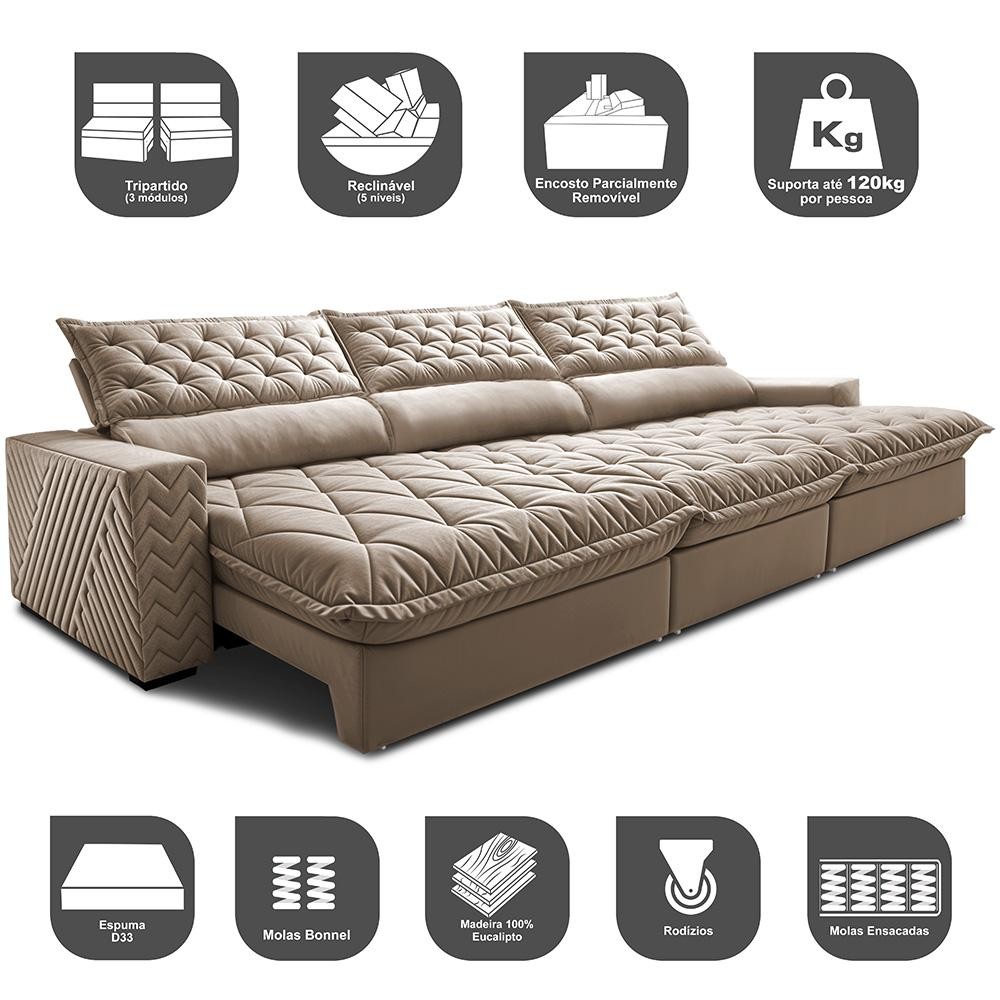 Sofá Retrátil e Reclinável 3,85m Cama inBox Spazus. Velusoft