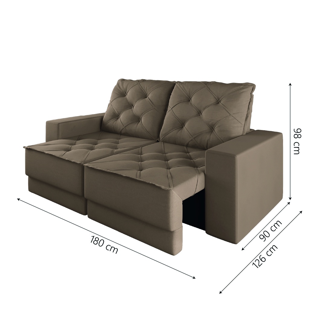 O Sofá Verona 3 Lugares é a escolha perfeita para a sua sala de estar! Com seu design moderno e sofisticado, produzido com materiais de ótima qualidade, seu encosto possui 4 posições reclináveis e assento retrátil. Além de seu tecido em veludo com toque macio deixando seu sofá muito mais aconchegante para aproveitar seus momentos de descanso e lazer. MEDIDA TOTAL DO SOFÁ: [ A ] = 98 cm [ L ] = 180 cm [ P ] = 90 cm / 126 cm (aberto) QUANTO SUPORTA POR ASSENTO: 110kg Por Assento PESO: 60 kg MODELO: Sofá Retrátil e Reclinável 3 Lugares 1,80m Verona Suede Mamflex MARCA: Mamflex COR: Capuccino TECIDO: Suede PERCINTAS: Elásticas Italiana MATERIAL DA ESTRUTURA: Madeira Eucalipto / OSB MATERIAL DO ASSENTO: Espuma DENSIDADE DE ESPUMA: D23 QUANTIDADE DE LUGARES: 3 MATERIAL DO ENCOSTO: Fibras e Flocos ENCOSTO RECLINÁVEL: 4 estágios POSSUI ENCOSTO REMOVÍVEL: Sim TIPO DE SOFÁ: Retrátil / Reclinável CONTEÚDO DA EMBALAGEM: 1 Volume VALE A PENA SABER: A tonalidade de cor pode variar de acordo com o lote do fabricante GARANTIA: 3 Meses A Esplanada Móveis se responsabiliza pela entrega dos produtos adquiridos até a porta de entrada ou portaria do endereço indicado, se a portaria do condomínio permitir, as entregas são efetuadas no piso térreo e é de responsabilidade do cliente a locomoção da mercadoria até seu apartamento ou casa. Confira as dimensões do produto e certifique-se de que estão adequadas aos elevadores, portas e corredores do local da entrega. Não fazemos a montagem, desmontagem do produto e/ou portas e janelas, transporte pela escada ou içamento pelo lado de fora do prédio. Não está incluso no serviço de entrega o deslocamento até o interior do apartamento, com ou sem elevador, ou deslocamento em locais de difícil acesso como escadarias.