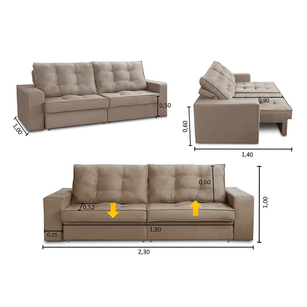 Sofá Retrátil e Reclinável 3 lugares 2,30m com Molas Marcela Suede Adonai Estofados