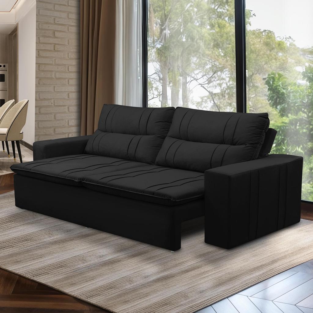 Sofá Retrátil e Reclinável 3 lugares com Molas 1,80m Ester Suede Preto Adonai Estofados