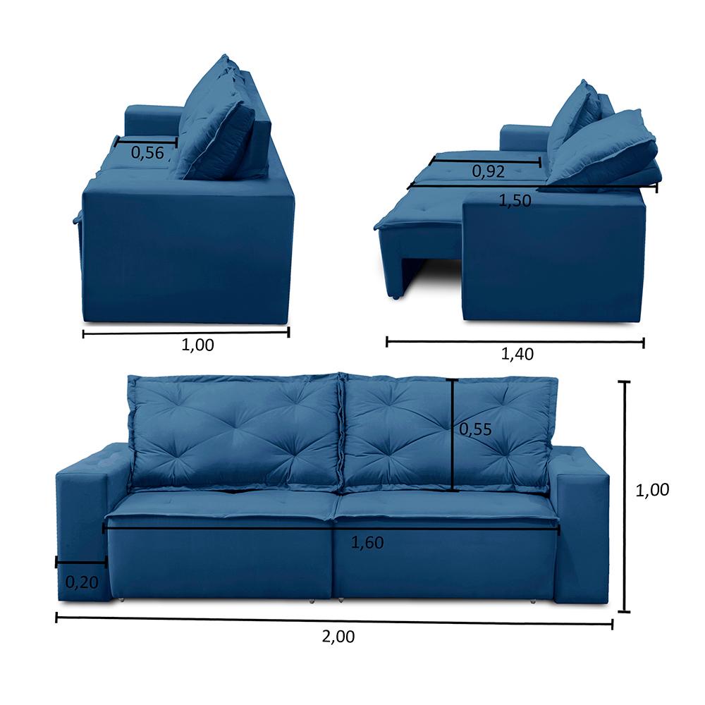 Sofá Retrátil e Reclinável 3 lugares com Molas 2,00m Ana Suede Azul Adonai Estofados