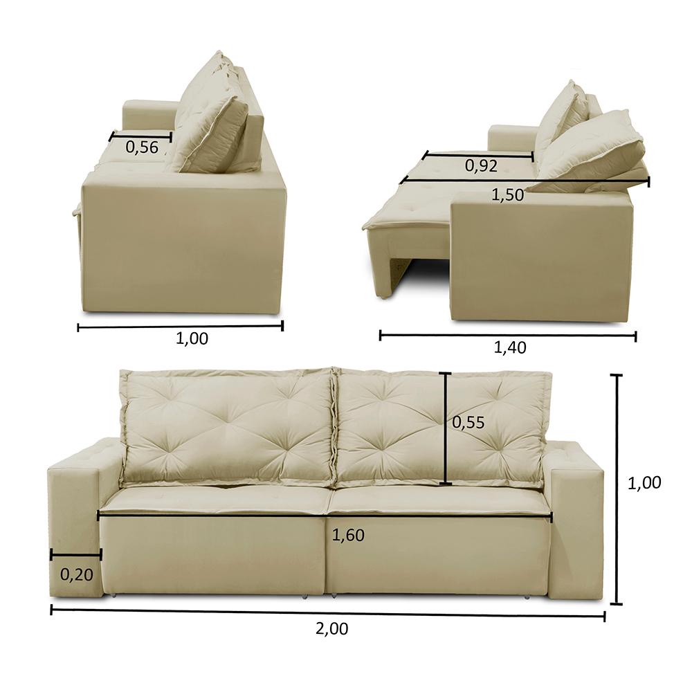Sofá Retrátil e Reclinável 3 lugares com Molas 2,00m Ana Suede Bege Adonai Estofados