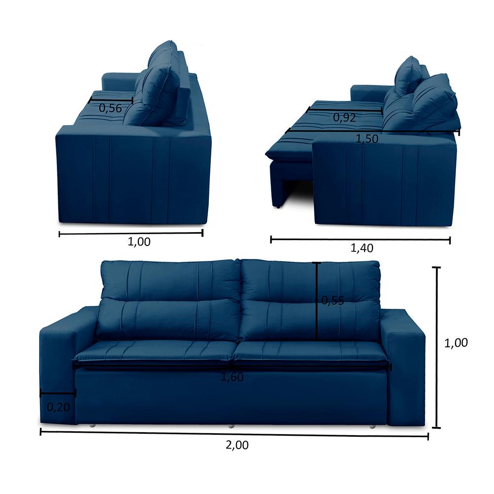 Sofá Retrátil e Reclinável 3 lugares com Molas 2,00m Ester Suede Azul Adonai Estofados