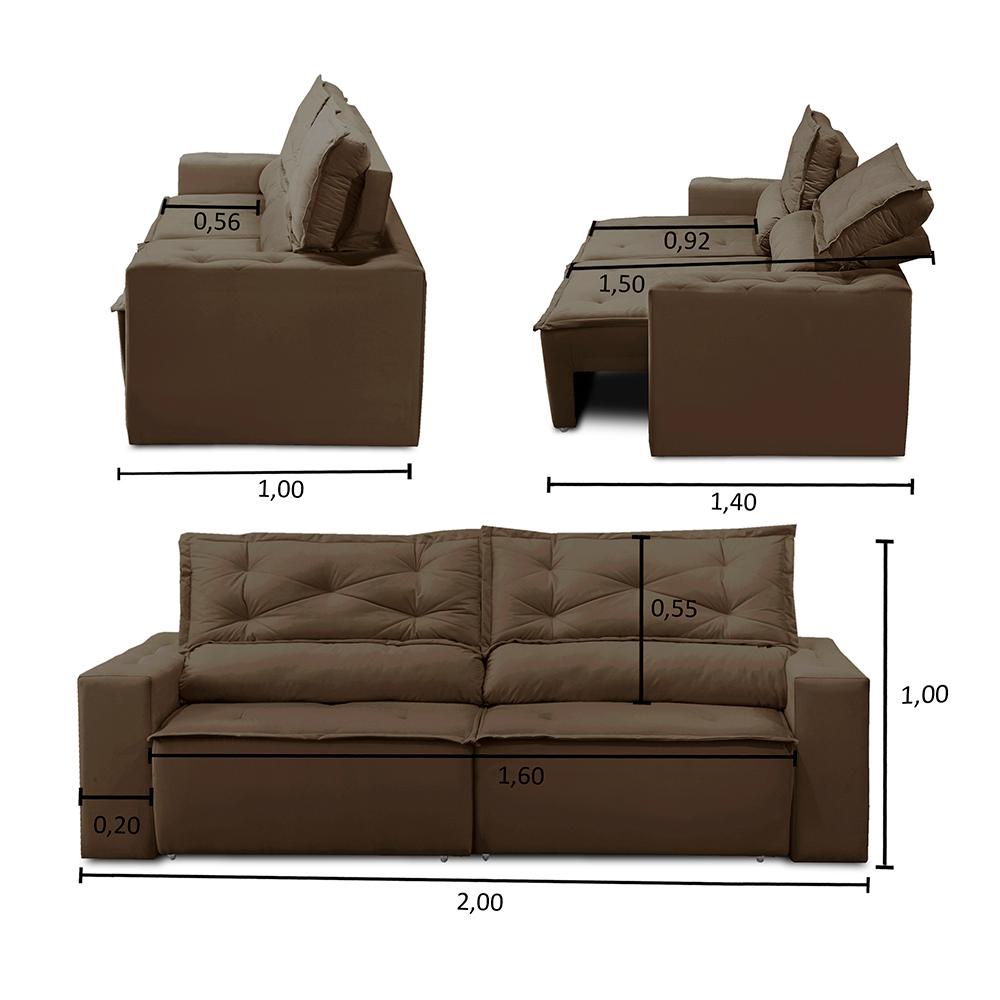 Sofá Retrátil e Reclinável 3 lugares com Molas 2,00m Livia Suede Marrom Adonai Estofados