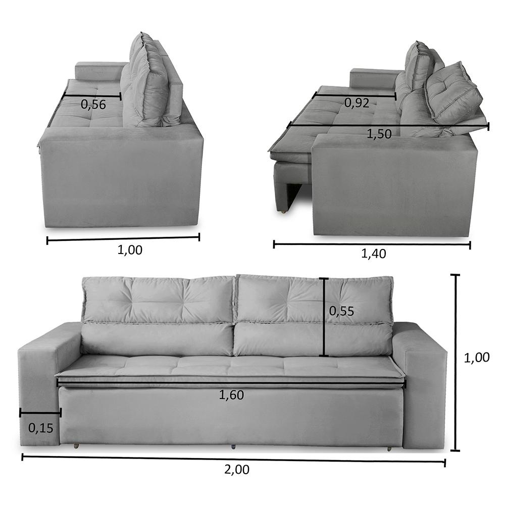 Conforto, qualidade e praticidade, é o que você vai encontrar no Sofá Vegas, um produto pensado para juntar essas 3 qualidades em um só. O produto que além de tudo isso vai deixar seu ambiente muito mais bonito e elegante, a peça para levar sua sala a outro nível.. Medidas do Produto Montado: - Largura: 2,00m - Profundidade: 1,00m - Altura total: 1,00m - Braços: 0,20cm - Profundidade de assento: 0,56cm - Profundidade de assento aberto: 0,92cm - Altura do encosto: 0,55cm - Largura de assento: 1,70m - Altura do chão ao assento: 0,47cm - Profundidade total aberto: 1,40m - Profundidade total aberto ( com o encosto totalmente reclinado ): 1,50m Especificações Técnicas: Encosto:Preenchido com fibra siliconada e flocos que vão garantir alta maciez e conforto, ele possui uma catrata com 3 estágios para que possa se acomodar da maneira que preferir. Assento:Feito com espuma D-28 com percintas elásticas de 5mm e Molas, o assento é retrátil que permite você utilizar o sofá com as pernas esticadas e ter todo o conforto que ele possa te proporcionar. Estrutura: Sua estrutura é composta por madeira de eucalipto 100% reflorestada, toda ela é fixada por grampos galvanizado que vão fazer todo o trabalho de manter a estrutura firme e com alta qualidade. Informações relevantes: - Esse produto suporta de 150 a 170kg por assento. - Acomoda até 3 pessoas tranquilamente. **Este produto vai embalado em apenas 1 Volume que passa tranquilamente nas portas convencionais. Garantia 90 dias após o recebimento do produto. Instruções de Limpeza: Utilizar um pano limpo e seco. Não limpar com escovas ou produtos abrasivos. Observações importantes: - As imagens são meramente ilustrativas, não acompanham objetos de decoração e eletros; - As cores dos produtos podem sofrer alterações dependendo do seu monitor ou lote do tecido. - Todos os produtos vão embalados com total segurança; - Confira a embalagem e o poduto no ato da entrega, caso o produto esteja avariado recuse imediatamente, coloque uma observação no verso da nota e entre em contato conosco. - Não nos responsabilizamos no ato da entrega por montagens, desmontagens, instalações de produtos, nem utilização de guinchos ou equipamentos similares para acesso a pisos superiores em apartamentos. - Confira as dimensões do produto no momento da compra e certifique-se de que passará normalmente por escadas, elevadores, portas e corredores. Observando as orientações acima, evita-se futuros desagrados ou imprevistos com a entrega do produto. CASO TENHA, A MONTAGEM DO PRODUTO É DE RESPONSABILIDADE DO COMPRADOR, NÃO EFETUAMOS A MONTAGEM DO PRODUTO. *As transportadoras NÃO SOBEM escadas, elevadores e não adentram residências* - A entrega será feita até a porta ou portaria do endereço no qual o pedido foi efetuado, qualquer necessidade de movimentação do produto até o local onde ele será utilizado é de inteira responsabilidade do CLIENTE, se caso houver algum dano, avaria ou qualquer coisa do tipo no produto durante a movimentação NÃO NOS RESPONSABILIZAMOS. *As transportadoras NÃO SOBEM escadas, elevadores e não adentram residências*