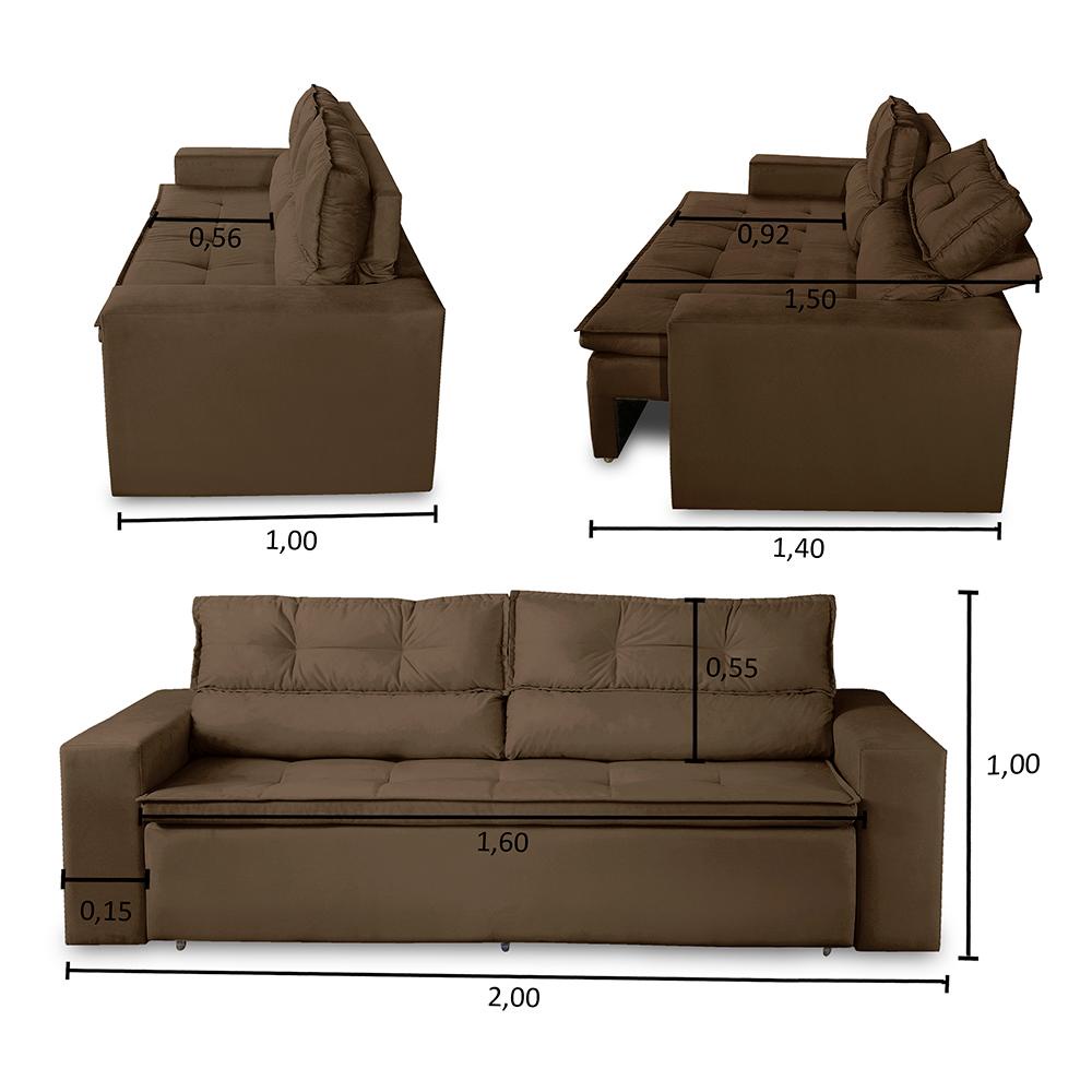 Conforto, qualidade e praticidade, é o que você vai encontrar no Sofá Vegas, um produto pensado para juntar essas 3 qualidades em um só. O produto que além de tudo isso vai deixar seu ambiente muito mais bonito e elegante, a peça para levar sua sala a outro nível.. Medidas do Produto Montado: - Largura: 2,00m - Profundidade: 1,00m - Altura total: 1,00m - Braços: 0,20cm - Profundidade de assento: 0,56cm - Profundidade de assento aberto: 0,92cm - Altura do encosto: 0,55cm - Largura de assento: 1,70m - Altura do chão ao assento: 0,47cm - Profundidade total aberto: 1,40m - Profundidade total aberto ( com o encosto totalmente reclinado ): 1,50m Especificações Técnicas: Encosto:Preenchido com fibra siliconada e flocos que vão garantir alta maciez e conforto, ele possui uma catrata com 3 estágios para que possa se acomodar da maneira que preferir. Assento:Feito com espuma D-28 com percintas elásticas de 5mm e Molas, o assento é retrátil que permite você utilizar o sofá com as pernas esticadas e ter todo o conforto que ele possa te proporcionar. Estrutura: Sua estrutura é composta por madeira de eucalipto 100% reflorestada, toda ela é fixada por grampos galvanizado que vão fazer todo o trabalho de manter a estrutura firme e com alta qualidade. Informações relevantes: - Esse produto suporta de 150 a 170kg por assento. - Acomoda até 3 pessoas tranquilamente. **Este produto vai embalado em apenas 1 Volume que passa tranquilamente nas portas convencionais. Garantia 90 dias após o recebimento do produto. Instruções de Limpeza: Utilizar um pano limpo e seco. Não limpar com escovas ou produtos abrasivos. Observações importantes: - As imagens são meramente ilustrativas, não acompanham objetos de decoração e eletros; - As cores dos produtos podem sofrer alterações dependendo do seu monitor ou lote do tecido. - Todos os produtos vão embalados com total segurança; - Confira a embalagem e o poduto no ato da entrega, caso o produto esteja avariado recuse imediatamente, coloque uma observação no verso da nota e entre em contato conosco. - Não nos responsabilizamos no ato da entrega por montagens, desmontagens, instalações de produtos, nem utilização de guinchos ou equipamentos similares para acesso a pisos superiores em apartamentos. - Confira as dimensões do produto no momento da compra e certifique-se de que passará normalmente por escadas, elevadores, portas e corredores. Observando as orientações acima, evita-se futuros desagrados ou imprevistos com a entrega do produto. CASO TENHA, A MONTAGEM DO PRODUTO É DE RESPONSABILIDADE DO COMPRADOR, NÃO EFETUAMOS A MONTAGEM DO PRODUTO. *As transportadoras NÃO SOBEM escadas, elevadores e não adentram residências* - A entrega será feita até a porta ou portaria do endereço no qual o pedido foi efetuado, qualquer necessidade de movimentação do produto até o local onde ele será utilizado é de inteira responsabilidade do CLIENTE, se caso houver algum dano, avaria ou qualquer coisa do tipo no produto durante a movimentação NÃO NOS RESPONSABILIZAMOS. *As transportadoras NÃO SOBEM escadas, elevadores e não adentram residências*