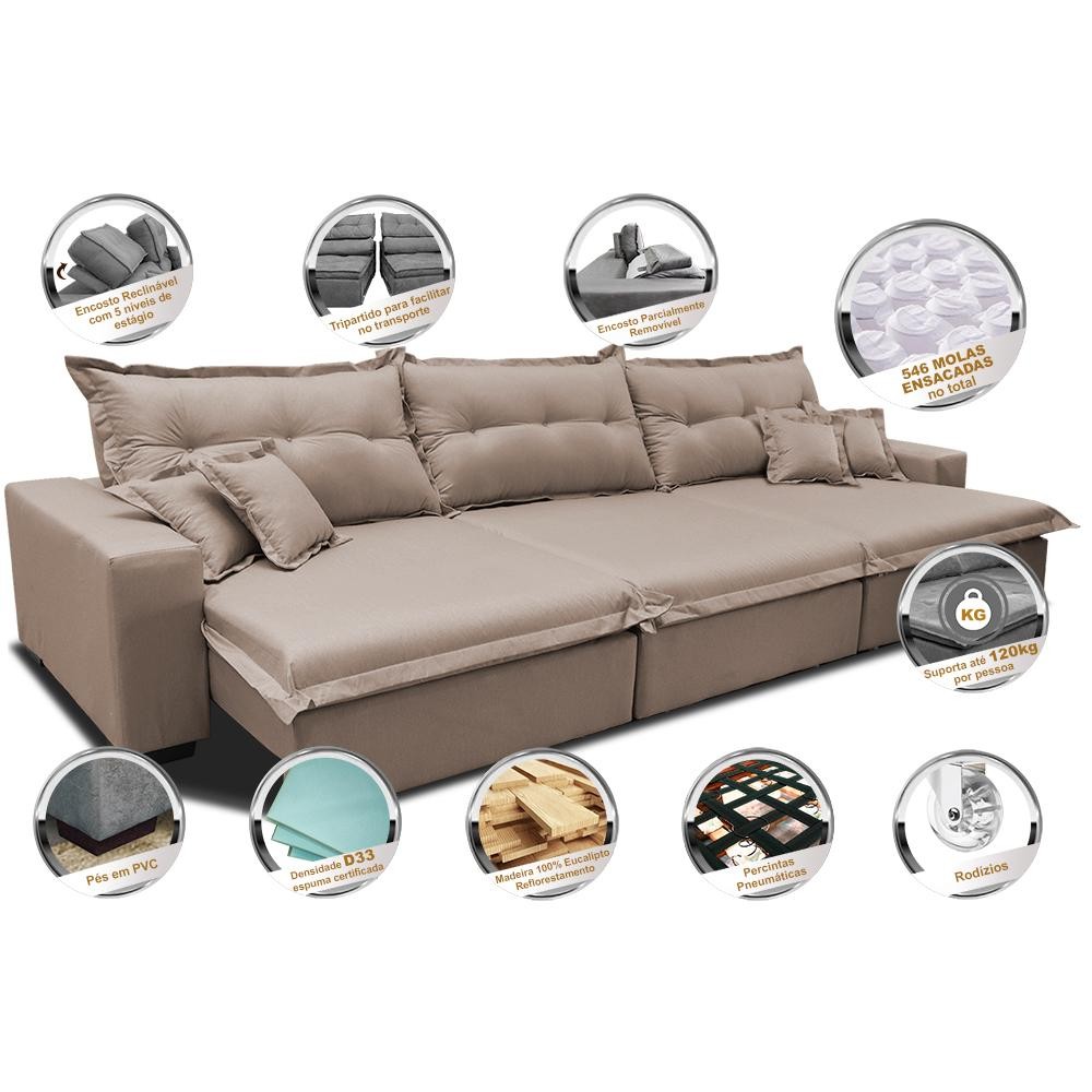 Sofá Retrátil e Reclinável 4,12m com Molas Ensacadas Cama inBox Prime Tecido Linho Bege Escuro