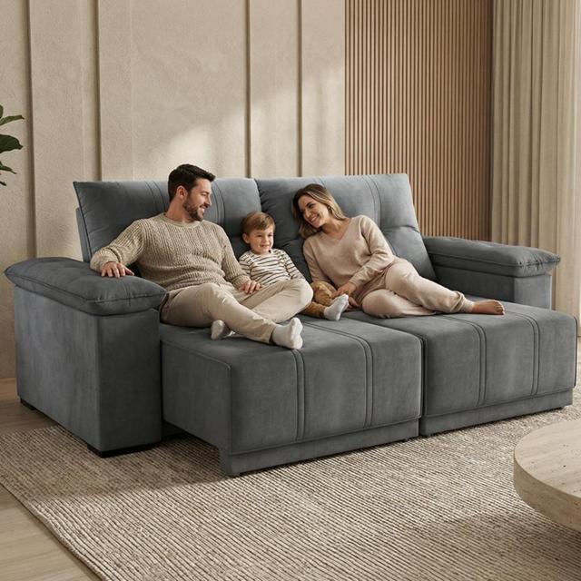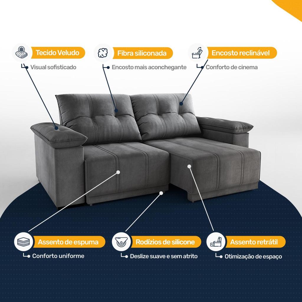 Sofá Retrátil e Reclinável 4 Lugares Espuma Fibra Siliconada Mariscal Veludo 200cm