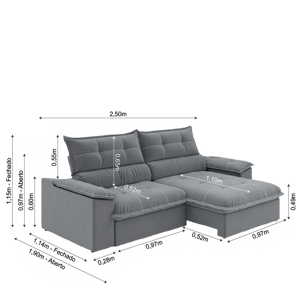 Sofá Retrátil e Reclinável Bipartido 2,50m 4 Lugares Veneto Slim Luizzi