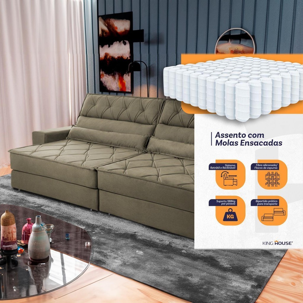 Sofá Retrátil Reclinável 2,50m Albany Suede Velut Tabaco Molas Ensacadas - King House