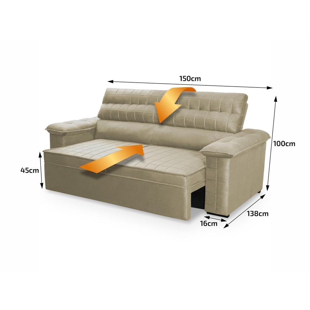 Dica Importante Gostou do produto, mas você tem preferência por outra cor ? Não tem problema, o Sofá Quantum está disponível 9 cores e 4 medidas diferentes para que se adapte a qualquer ambiente e agrade a todos os gostos :) Medida: 1,50m - 1,80m - 2,00m - 2,30m Materiais: Suede Velut Cores: Azul, Bege, Cinza, Cinza Lunar, Marrom, Marrom Café, Preto, Tabaco e Vermelho Caso você tenha interesse em visualizar os anúncios de alguma das opções acima, basta efetuar uma busca de acordo com as opções acima. Introdução ao Produto Sabe aquela sensação de felicidade e satisfação que você sente quando faz uma boa escolha ?! Pois bem, essa é a sensação de comprar um sofá Quantum. Um produto moderno, com design elegante que combina com qualquer ambiente e o deixa ainda mais lindo e aconchegante. Ele possui encosto reclinável em cinco posições, proporcionando-lhe mais conforto na hora do descanso. Não para por aí: seu assento retrátil conta com espuma D23, transformando seu sofá em uma verdadeira cama para assistir seu filme preferido. Não perca mais tempo e garanta já o seu sofá Quantum! Características - Capacidade: 2 pessoas - Peso real suportado: 120kg por pessoa - Encosto reclinável de 5 posições - Assento retrátil com espuma D23 - Encosto em Fibra Siliconada - Estrutura em madeira de reflorestamento, eucalipto Dimensões (Produto montado) - Altura: 1,00 m - Largura : 1,50 m - Profundidade: 0,98 m - Profundidade aberto: 1,35 m Montagem A montagem do produto pode ser feita facilmente seguindo o manual de instruções que acompanha a embalagem do produto. Não é necessário técnico especializado. Garantia: 90 dias Informações Relevantes - É imprescindível ter ciência de que é possível que haja divergência de tonalidade nos tecidos devido às variações de configurações de monitores/telas; - Não nos responsabilizamos pelo transporte por escadas, elevadores, guincho ou içamento deste produto, qualquer despesa é de responsabilidade do cliente; - Verifique as dimensões do produto, certificando-se de que o mesmo possa ser transportado por portas, corredores e elevadores; - As imagens são meramente ilustrativas, podendo ter variação de tonalidades e não acompanham os objetos que decoram a imagem; - Não nos responsabilizamos pela instalação e montagem; - Prestamos assistência somente por defeitos de fabricação. Para quaisquer dúvidas adicionais, entre em contato com nosso SAC.