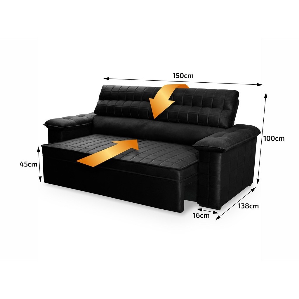 Sofá Retrátil Reclinável 2 lugares 1,50m Quantum Suede Velut Preto - King House
