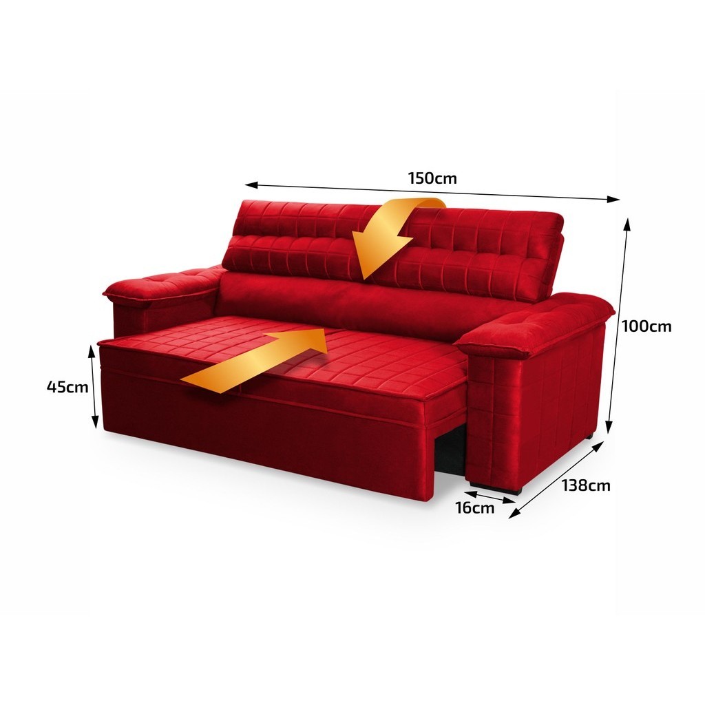 Sofá Retrátil Reclinável 2 lugares 1,50m Quantum Suede Velut Vermelho - King House