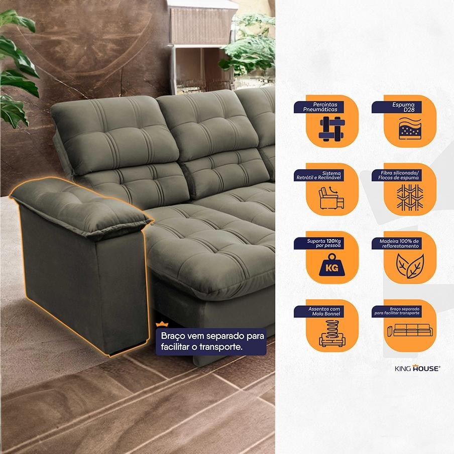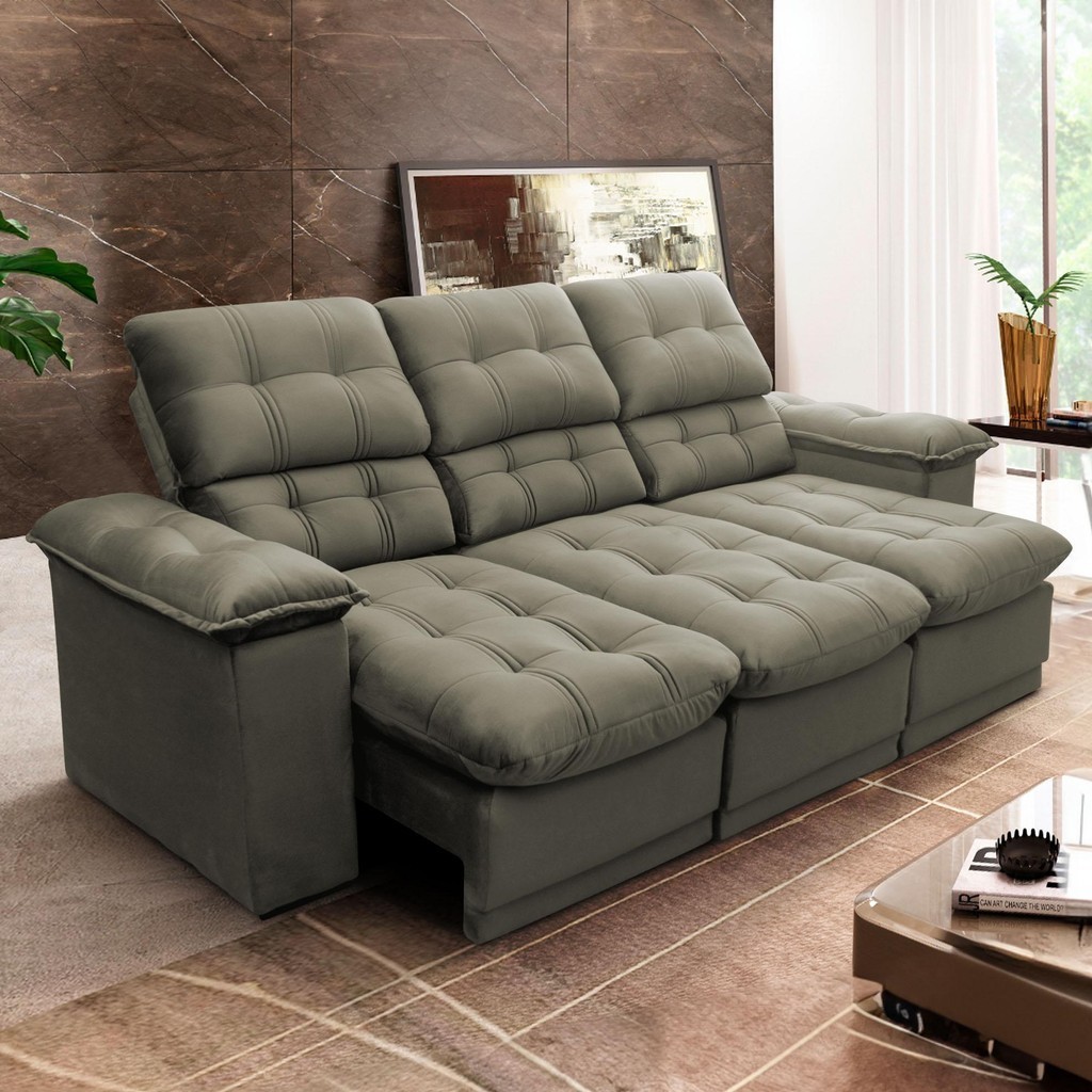 Sofá Retrátil Reclinável Atenas 2,30m Suede Velut Tabaco c/ Molas no Assento - King House