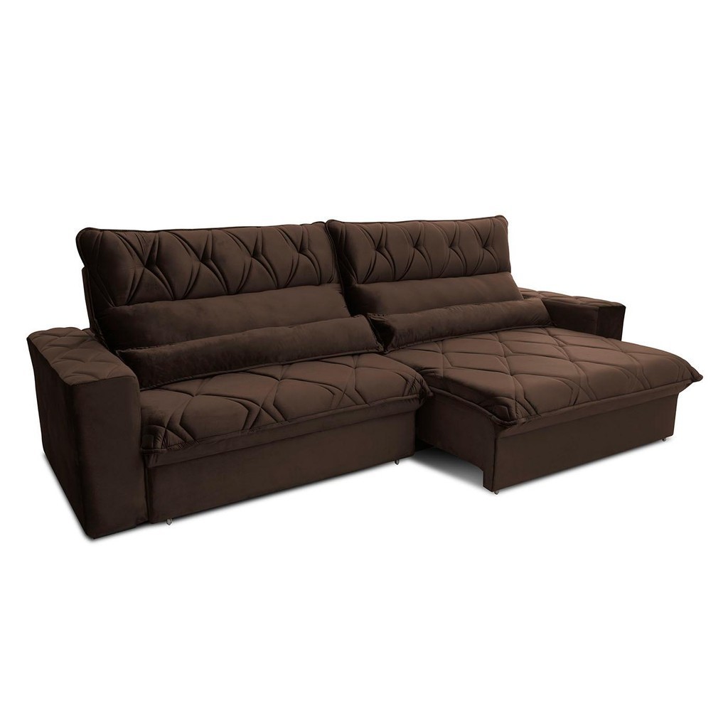Sofá Retrátil Reclinável França 2,30m Suede Velut Marrom Molas no Assento - King House