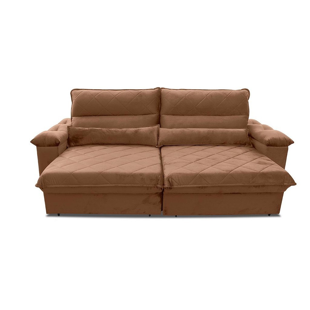 Sofá Retrátil Reclinável Grécia 2,70m Suede Velut Bege Molas no Assento - King House