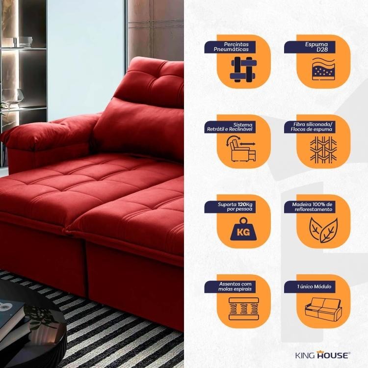 Sofá Retrátil Reclinável Verona 1,50m Suede Velut Vermelho Molas no Assento - King House