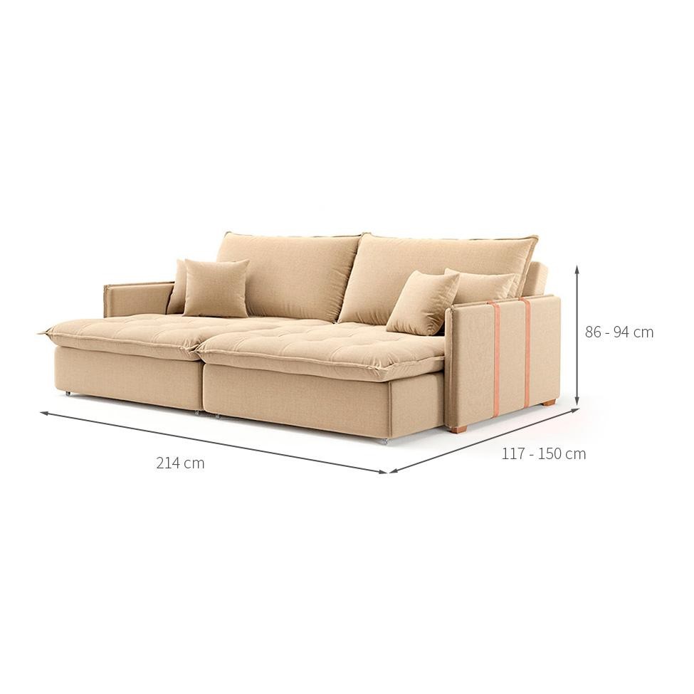 Que tal o Sofá Retrátil sem Caixa Solomons? Aconchegante e receptivo, o Sofá Retrátil sem Caixa Solomons tem tudo para deixar sua casa mais confortável. Estruturado em materiais resistentes, ele tem assento e encosto com enchimento em espuma e almofadas soltas em plumante de silicone, conferindo muito bem-estar e aconchego a quem está usando. Além de ser acolhedor e se transformar também em sofá-cama, o móvel é ideal para ambientes menores, pois é do tipo sem caixa, que otimiza o espaço disponível no cômodo e libera mais área de circulação. Tudo isso é arrematado com um design clean e elegante que destaca a cor atemporal e com certeza vai deixar seu cantinho impecável, digno de muitos elogios. Cor: Bege Garantia em Meses: 3 Cores do Produto: Bege Instruções/Cuidados: Limpar com pano seco Conteúdo da Embalagem: 1 Sofá - Entregue em: 2 Volumes Modelo: Retrátil e Reclinável Número de Volumes: 1 Material: O Sofá Sem Caixa Solomons possui estrutura em madeira de eucalipto 25mm, almofadas soltas com plumante 100% siliconado, revestimento em Linho, detalhe lateral em tecido sintético e acabamento com puxões nos assentos e encostos. (Sofá Bipartido) Material para Filtro: Eucalipto Descrição do Tamanho: Aberto: Altura: 86 cm | Largura: 214 cm | Profundidade: 150 cm / Fechado: Altura: 94 cm | Largura: 214 cm | Profundidade: 117 cm Altura do Produto (cm): 94 Largura do Produto (cm): 214 Comprimento do Produto (cm): 117 Peso do Produto (Kg): 67.5 Produto precisa de Montagem?: Sim, sugerimos a contratação do nosso serviço de montagem (para os CEPs em que o serviço está disponível) ou de algum profissional experiente de sua preferência Tipo de Encosto: Reclinável Tipo de pé: Fixo Altura do assento até o chão (cm): 48 Tendências: Boho Escandinavo Material da estrutura: Eucalipto Material do enchimento do assento: Espuma D23 Material do enchimento do encosto: Plumante de Silicone Material do Revestimento: Linho Possui Baú?: Não Tipo de assento: Retrátil Material dos pés: Polipropileno PROFUNDIDADE x LARGURA x ALTURA: 117 x 214 x 94 Fornecedor: Lidiane M. T. A. Batista - ME É com chaise: Não Tipo de produto: Sofá É sofá-cama: Não É de canto: Não Baterias são necessárias?: Não Certificação de teste externa: Não Componentes incluídos: Não Is Fragile: Não Número da peça: Não Produto: Sofá É reclinável: Não Quantidade de lugares: 3 Tipo do Sofá: null Inclui manual de montagem: Não