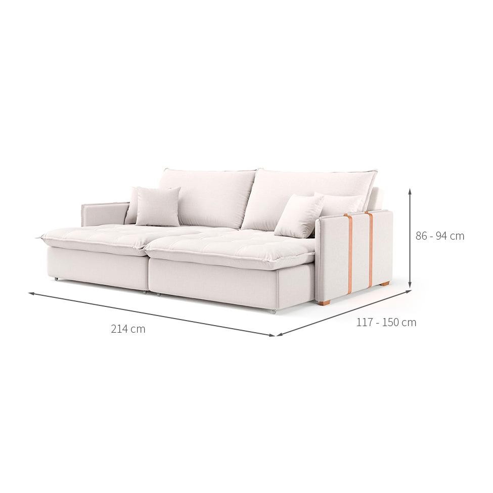 Que tal o Sofá Retrátil sem Caixa Solomons? Aconchegante e receptivo, o Sofá Retrátil sem Caixa Solomons tem tudo para deixar sua casa mais confortável. Estruturado em materiais resistentes, ele tem assento e encosto com enchimento em espuma e almofadas soltas em plumante de silicone, conferindo muito bem-estar e aconchego a quem está usando. Além de ser acolhedor e se transformar também em sofá-cama, o móvel é ideal para ambientes menores, pois é do tipo sem caixa, que otimiza o espaço disponível no cômodo e libera mais área de circulação. Tudo isso é arrematado com um design clean e elegante que destaca a cor atemporal e com certeza vai deixar seu cantinho impecável, digno de muitos elogios. Garantia em Meses: 3 Cores do Produto: Off White Instruções/Cuidados: Limpar com pano seco Conteúdo da Embalagem: 1 Sofá - Entregue em: 2 Volumes Modelo: Sofá-Cama Número de Volumes: 1 Material: O Sofá Sem Caixa Solomons possui estrutura em madeira de eucalipto 25mm, almofadas soltas com plumante 100% siliconado, revestimento em Linho, detalhe lateral em tecido sintético e acabamento com puxões nos assentos e encostos. (Sofá Bipartido) Material para Filtro: Eucalipto Descrição do Tamanho: Aberto: Altura: 86 cm | Largura: 214 cm | Profundidade: 150 cm / Fechado: Altura: 94 cm | Largura: 214 cm | Profundidade: 117 cm Altura do Produto (cm): 94 Largura do Produto (cm): 214 Comprimento do Produto (cm): 117 Peso do Produto (Kg): 67.5 Produto precisa de Montagem?: Sim, sugerimos a contratação do nosso serviço de montagem (para os CEPs em que o serviço está disponível) ou de algum profissional experiente de sua preferência Tipo de pé: Fixo Altura do assento até o chão (cm): 48 Tendências: Boho Escandinavo Material da estrutura: Eucalipto Material do enchimento do assento: Espuma D23 Material do enchimento do encosto: Plumante de Silicone Material do Revestimento: Linho Possui Baú?: Não Tipo de assento: Retrátil Material dos pés: Polipropileno PROFUNDIDADE x LARGURA x ALTURA: 117 x 214 x 94 Fornecedor: Lidiane M. T. A. Batista - ME É com chaise: Não Tipo de produto: Sofá É sofá-cama: Não É de canto: Não Baterias são necessárias?: Não Certificação de teste externa: Não Componentes incluídos: Não Is Fragile: Não Número da peça: Não Produto: Sofá Quantidade de lugares: 3 Tipo do Sofá: Inclui manual de montagem: Não