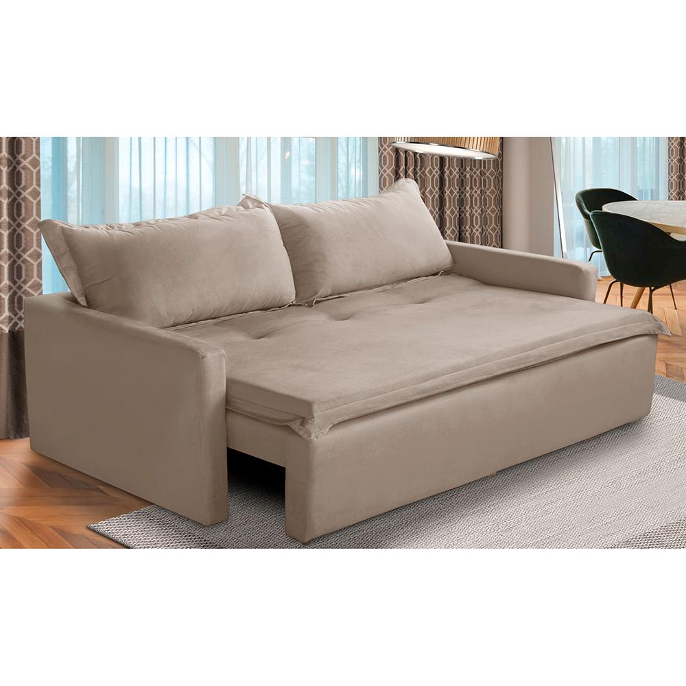 Sofá Sem Caixa Retrátil e Reclinável 1,65m com Molas Kiara Suede Cappuccino Adonai Estofados