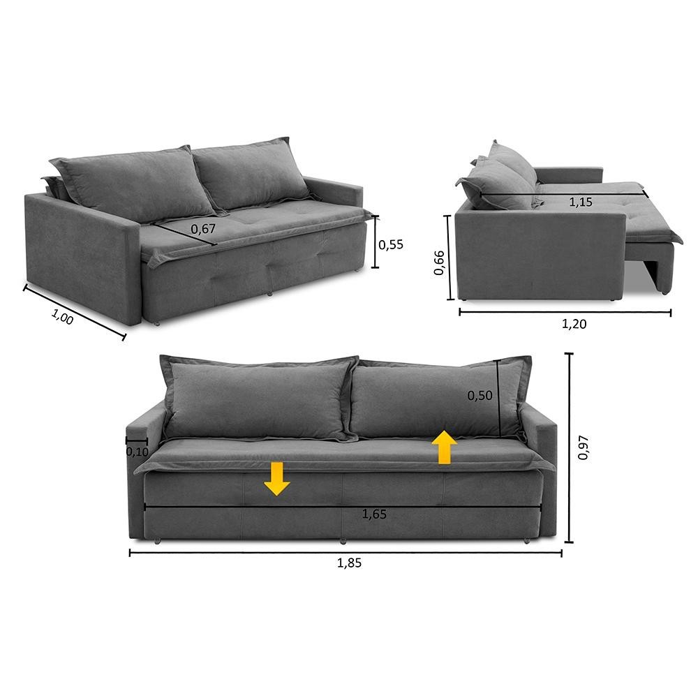 Sofá Sem Caixa Retrátil e Reclinável Maísa é a escolha ideal para quem procura combinar estilo e comodidade. Seu design contemporâneo se adapta facilmente a diferentes decorações, enquanto sua estrutura robusta e estofamento de alta qualidade garantem durabilidade e conforto. Medidas do Produto Montado: - Largura: 1,85m - Altura: 0,97m - Profundidade total fechado: 1,00m - Profundidade total aberto: 1,20m - Largura de assento: 1,65m - Profundidade do assento fechado: 0,67m - Profundidade do assento como cama: 1,15m - Altura do assento ao final do encosto: 0,50m - Braço: 0,10m - Chão ao assento: 0,55m - Chão ao final do braço: 0,66m Especificações Técnicas: Encosto:Composto por 2 almofadas soltas com enchimento de 80% fibra e 20% flocos que proporcionam maciez e conforto. Assento:Composto pelo conjunto de Molas Bonnel, Espuma D-33 e percintas elásticas de 5mm que são esticadas por uma percintadeira, que garante a melhor qualidade para o conforto e durabilidade do assento. Estrutura:Sua estrutura é toda composta por madeira de eucalipto 100% reflorestada, fixada por grampos galvanizados que vão fazer todo o trabalho de manter uma estrutura firme, com alta qualidade e durabilidade. Informações relevantes: - Esse produto suporta de 130 a 150kg por assento. *Este produto vai embalado em 1 Volume. Garantia 90 dias após o recebimento do produto. Instruções de limpeza:Utilizar um pano limpo e seco.Não limpe com escovas ou produtos abrasivos. Observações importantes: - As imagens são meramente ilustrativas, não acompanham objetos de decoração e eletros; - As cores dos produtos podem sofrer alterações dependendo do seu monitor, tela de celular ou lote do tecido. - Todos os produtos vão embalados com total segurança; - Confira a embalagem e o produto no ato da entrega, caso o produto esteja em desacordo recuse imediatamente. - Não nos responsabilizamos no ato de entrega por montagens, desmontagens, instalações de produtos, nem uso de guinchos ou equipamentos para acesso a pisos superiores em apartamentos. - Confira as dimensões do produto no momento da compra e certifique-se de que passará por escadas, elevadores, portas e corredores. Observando as orientações acima, evita-se futuros desagrados ou imprevistos com a entrega do produto. CASO TENHA, A MONTAGEM DO PRODUTO É DE RESPONSABILIDADE DO COMPRADOR, NÃO EFETUAMOS A MONTAGEM DO PRODUTO. *As transportadorasNÃO SOBEMescadas, elevadores e não adentram residências* - A entrega será feita até a porta ou portaria do endereço no qual o pedido foi feito, qualquer necessidade de movimentação do produto até o local onde ele será utilizado é de inteira responsabilidade do CLIENTE, caso haja algum dano ou qualquer coisa do tipo no produto durante a movimentação NÃO NOS RESPONSABILIZAMOS.