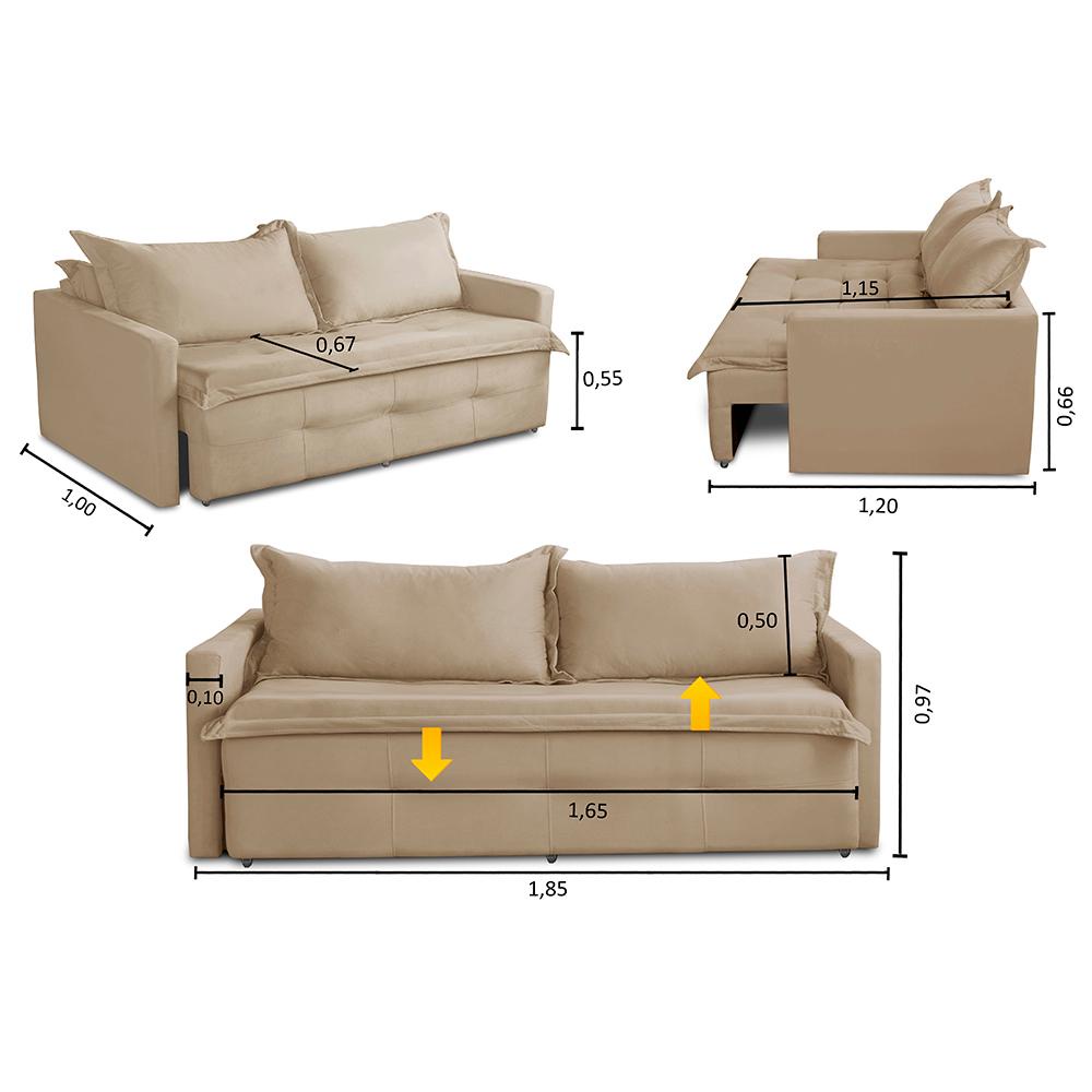 Sofá Sem Caixa Retrátil e Reclinável Maísa é a escolha ideal para quem procura combinar estilo e comodidade. Seu design contemporâneo se adapta facilmente a diferentes decorações, enquanto sua estrutura robusta e estofamento de alta qualidade garantem durabilidade e conforto. Medidas do Produto Montado: - Largura: 1,85m - Altura: 0,97m - Profundidade total fechado: 1,00m - Profundidade total aberto: 1,20m - Largura de assento: 1,65m - Profundidade do assento fechado: 0,67m - Profundidade do assento como cama: 1,15m - Altura do assento ao final do encosto: 0,50m - Braço: 0,10m - Chão ao assento: 0,55m - Chão ao final do braço: 0,66m Especificações Técnicas: Encosto:Composto por 2 almofadas soltas com enchimento de 80% fibra e 20% flocos que proporcionam maciez e conforto. Assento:Composto pelo conjunto de Molas Bonnel, Espuma D-33 e percintas elásticas de 5mm que são esticadas por uma percintadeira, que garante a melhor qualidade para o conforto e durabilidade do assento. Estrutura:Sua estrutura é toda composta por madeira de eucalipto 100% reflorestada, fixada por grampos galvanizados que vão fazer todo o trabalho de manter uma estrutura firme, com alta qualidade e durabilidade. Informações relevantes: - Esse produto suporta de 130 a 150kg por assento. *Este produto vai embalado em 1 Volume. Garantia 90 dias após o recebimento do produto. Instruções de limpeza:Utilizar um pano limpo e seco.Não limpe com escovas ou produtos abrasivos. Observações importantes: - As imagens são meramente ilustrativas, não acompanham objetos de decoração e eletros; - As cores dos produtos podem sofrer alterações dependendo do seu monitor, tela de celular ou lote do tecido. - Todos os produtos vão embalados com total segurança; - Confira a embalagem e o produto no ato da entrega, caso o produto esteja em desacordo recuse imediatamente. - Não nos responsabilizamos no ato de entrega por montagens, desmontagens, instalações de produtos, nem uso de guinchos ou equipamentos para acesso a pisos superiores em apartamentos. - Confira as dimensões do produto no momento da compra e certifique-se de que passará por escadas, elevadores, portas e corredores. Observando as orientações acima, evita-se futuros desagrados ou imprevistos com a entrega do produto. CASO TENHA, A MONTAGEM DO PRODUTO É DE RESPONSABILIDADE DO COMPRADOR, NÃO EFETUAMOS A MONTAGEM DO PRODUTO. *As transportadorasNÃO SOBEMescadas, elevadores e não adentram residências* - A entrega será feita até a porta ou portaria do endereço no qual o pedido foi feito, qualquer necessidade de movimentação do produto até o local onde ele será utilizado é de inteira responsabilidade do CLIENTE, caso haja algum dano ou qualquer coisa do tipo no produto durante a movimentação NÃO NOS RESPONSABILIZAMOS.