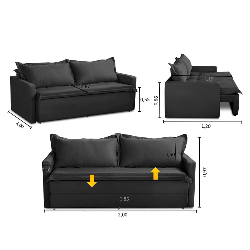 Sofá Sem Caixa Retrátil e Reclinável Kiara possui uma funcionalidade inteligente, um design elegante, além de proporcionar o equilíbrio perfeito entre estilo e comodidade. Medidas do Produto Montado: - Largura: 2,00m - Altura: 0,97m - Profundidade total fechado: 1,00m - Profundidade total aberto: 1,20m - Largura de assento: 1,80m - Profundidade do assento fechado: 0,67m - Profundidade do assento como cama: 1,15m - Altura do assento ao final do encosto: 0,50m - Braço: 0,10m - Chão ao assento: 0,55m - Chão ao final do braço: 0,66m Especificações Técnicas: Encosto:Composto por 2 almofadas soltas com enchimento de 80% fibra e 20% flocos que proporcionam maciez e conforto. Assento:Composto pelo conjunto deMolas Bonnel, Espuma D-33 e percintas elásticas de 5mm que são esticadas por uma percintadeira, que garante a melhor qualidade para o conforto e durabilidade do assento. Estrutura:Sua estrutura é toda composta por madeira de eucalipto 100% reflorestada, fixada por grampos galvanizados que vão fazer todo o trabalho de manter uma estrutura firme, com alta qualidade e durabilidade. Informações relevantes: - Esse produto suporta de 130 a 150kg por assento. *Este produto vai embalado em 1 Volume. Garantia 90 dias após o recebimento do produto. Instruções de limpeza:Utilizar um pano limpo e seco.Não limpe com escovas ou produtos abrasivos. Observações importantes: - As imagens são meramente ilustrativas, não acompanham objetos de decoração e eletros; - As cores dos produtos podem sofrer alterações dependendo do seu monitor, tela de celular ou lote do tecido. - Todos os produtos vão embalados com total segurança; - Confira a embalagem e o produto no ato da entrega, caso o produto esteja em desacordo recuse imediatamente. - Não nos responsabilizamos no ato de entrega por montagens, desmontagens, instalações de produtos, nem uso de guinchos ou equipamentos para acesso a pisos superiores em apartamentos. - Confira as dimensões do produto no momento da compra e certifique-se de que passará por escadas, elevadores, portas e corredores. Observando as orientações acima, evita-se futuros desagrados ou imprevistos com a entrega do produto. CASO TENHA, A MONTAGEM DO PRODUTO É DE RESPONSABILIDADE DO COMPRADOR, NÃO EFETUAMOS A MONTAGEM DO PRODUTO. *As transportadorasNÃO SOBEMescadas, elevadores e não adentram residências* - A entrega será feita até a porta ou portaria do endereço no qual o pedido foi feito, qualquer necessidade de movimentação do produto até o local onde ele será utilizado é de inteira responsabilidade do CLIENTE, caso haja algum dano ou qualquer coisa do tipo no produto durante a movimentação NÃO NOS RESPONSABILIZAMOS.