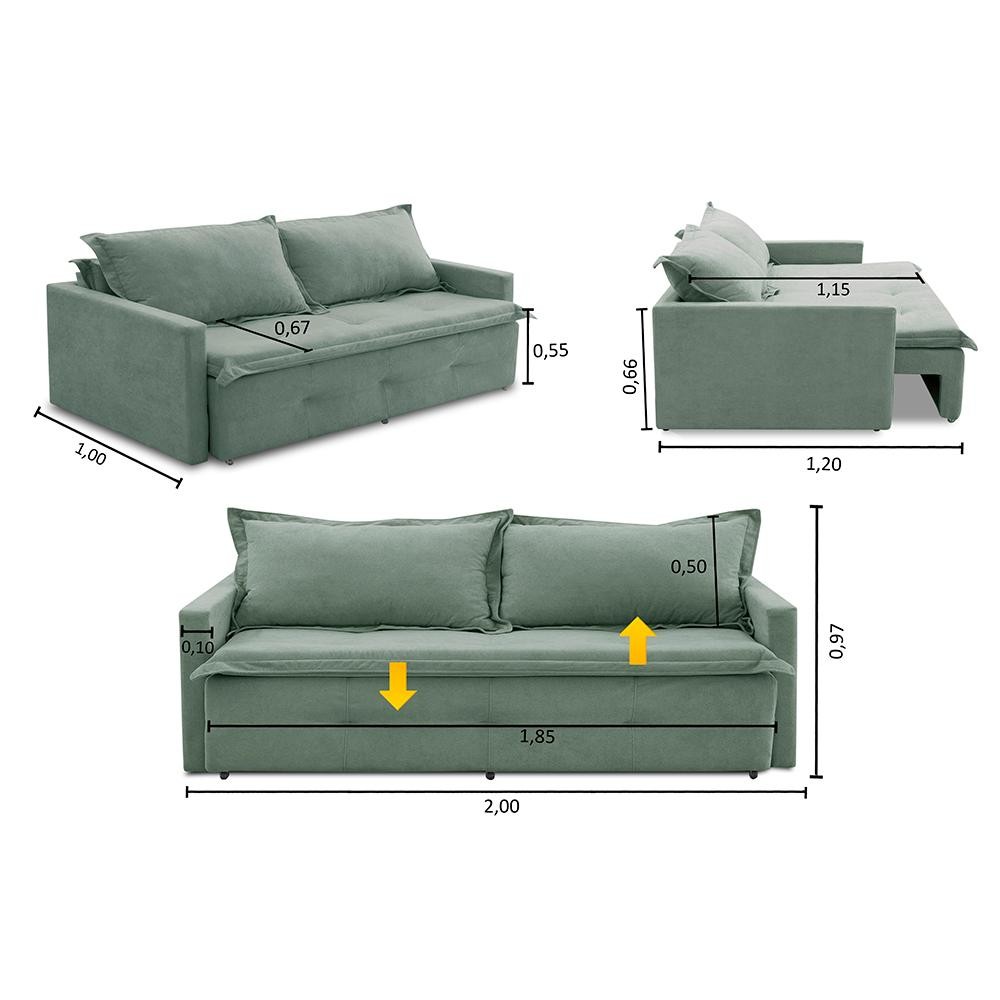 Sofá Sem Caixa Retrátil e Reclinável Maísa é a escolha ideal para quem procura combinar estilo e comodidade. Seu design contemporâneo se adapta facilmente a diferentes decorações, enquanto sua estrutura robusta e estofamento de alta qualidade garantem durabilidade e conforto. Medidas do Produto Montado: - Largura: 2,00m - Altura: 0,97m - Profundidade total fechado: 1,00m - Profundidade total aberto: 1,20m - Largura de assento: 1,80m - Profundidade do assento fechado: 0,67m - Profundidade do assento como cama: 1,15m - Altura do assento ao final do encosto: 0,50m - Braço: 0,10m - Chão ao assento: 0,55m - Chão ao final do braço: 0,66m Especificações Técnicas: Encosto:Composto por 2 almofadas soltas com enchimento de 80% fibra e 20% flocos que proporcionam maciez e conforto. Assento:Composto pelo conjunto de Molas Bonnel, Espuma D-33 e percintas elásticas de 5mm que são esticadas por uma percintadeira, que garante a melhor qualidade para o conforto e durabilidade do assento. Estrutura:Sua estrutura é toda composta por madeira de eucalipto 100% reflorestada, fixada por grampos galvanizados que vão fazer todo o trabalho de manter uma estrutura firme, com alta qualidade e durabilidade. Informações relevantes: - Esse produto suporta de 130 a 150kg por assento. *Este produto vai embalado em 1 Volume. Garantia 90 dias após o recebimento do produto. Instruções de limpeza:Utilizar um pano limpo e seco.Não limpe com escovas ou produtos abrasivos. Observações importantes: - As imagens são meramente ilustrativas, não acompanham objetos de decoração e eletros; - As cores dos produtos podem sofrer alterações dependendo do seu monitor, tela de celular ou lote do tecido. - Todos os produtos vão embalados com total segurança; - Confira a embalagem e o produto no ato da entrega, caso o produto esteja em desacordo recuse imediatamente. - Não nos responsabilizamos no ato de entrega por montagens, desmontagens, instalações de produtos, nem uso de guinchos ou equipamentos para acesso a pisos superiores em apartamentos. - Confira as dimensões do produto no momento da compra e certifique-se de que passará por escadas, elevadores, portas e corredores. Observando as orientações acima, evita-se futuros desagrados ou imprevistos com a entrega do produto. CASO TENHA, A MONTAGEM DO PRODUTO É DE RESPONSABILIDADE DO COMPRADOR, NÃO EFETUAMOS A MONTAGEM DO PRODUTO. *As transportadorasNÃO SOBEMescadas, elevadores e não adentram residências* - A entrega será feita até a porta ou portaria do endereço no qual o pedido foi feito, qualquer necessidade de movimentação do produto até o local onde ele será utilizado é de inteira responsabilidade do CLIENTE, caso haja algum dano ou qualquer coisa do tipo no produto durante a movimentação NÃO NOS RESPONSABILIZAMOS.