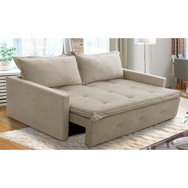 Sofá Sem Caixa Retrátil e Reclinável Maísa é a escolha ideal para quem procura combinar estilo e comodidade. Seu design contemporâneo se adapta facilmente a diferentes decorações, enquanto sua estrutura robusta e estofamento de alta qualidade garantem durabilidade e conforto. Medidas do Produto Montado: - Largura: 2,00m - Altura: 0,97m - Profundidade total fechado: 1,00m - Profundidade total aberto: 1,20m - Largura de assento: 1,80m - Profundidade do assento fechado: 0,67m - Profundidade do assento como cama: 1,15m - Altura do assento ao final do encosto: 0,50m - Braço: 0,10m - Chão ao assento: 0,55m - Chão ao final do braço: 0,66m Especificações Técnicas: Encosto:Composto por 2 almofadas soltas com enchimento de 80% fibra e 20% flocos que proporcionam maciez e conforto. Assento:Composto pelo conjunto de Molas Bonnel, Espuma D-33 e percintas elásticas de 5mm que são esticadas por uma percintadeira, que garante a melhor qualidade para o conforto e durabilidade do assento. Estrutura:Sua estrutura é toda composta por madeira de eucalipto 100% reflorestada, fixada por grampos galvanizados que vão fazer todo o trabalho de manter uma estrutura firme, com alta qualidade e durabilidade. Informações relevantes: - Esse produto suporta de 130 a 150kg por assento. *Este produto vai embalado em 1 Volume. Garantia 90 dias após o recebimento do produto. Instruções de limpeza:Utilizar um pano limpo e seco.Não limpe com escovas ou produtos abrasivos. Observações importantes: - As imagens são meramente ilustrativas, não acompanham objetos de decoração e eletros; - As cores dos produtos podem sofrer alterações dependendo do seu monitor, tela de celular ou lote do tecido. - Todos os produtos vão embalados com total segurança; - Confira a embalagem e o produto no ato da entrega, caso o produto esteja em desacordo recuse imediatamente. - Não nos responsabilizamos no ato de entrega por montagens, desmontagens, instalações de produtos, nem uso de guinchos ou equipamentos para acesso a pisos superiores em apartamentos. - Confira as dimensões do produto no momento da compra e certifique-se de que passará por escadas, elevadores, portas e corredores. Observando as orientações acima, evita-se futuros desagrados ou imprevistos com a entrega do produto. CASO TENHA, A MONTAGEM DO PRODUTO É DE RESPONSABILIDADE DO COMPRADOR, NÃO EFETUAMOS A MONTAGEM DO PRODUTO. *As transportadorasNÃO SOBEMescadas, elevadores e não adentram residências* - A entrega será feita até a porta ou portaria do endereço no qual o pedido foi feito, qualquer necessidade de movimentação do produto até o local onde ele será utilizado é de inteira responsabilidade do CLIENTE, caso haja algum dano ou qualquer coisa do tipo no produto durante a movimentação NÃO NOS RESPONSABILIZAMOS.