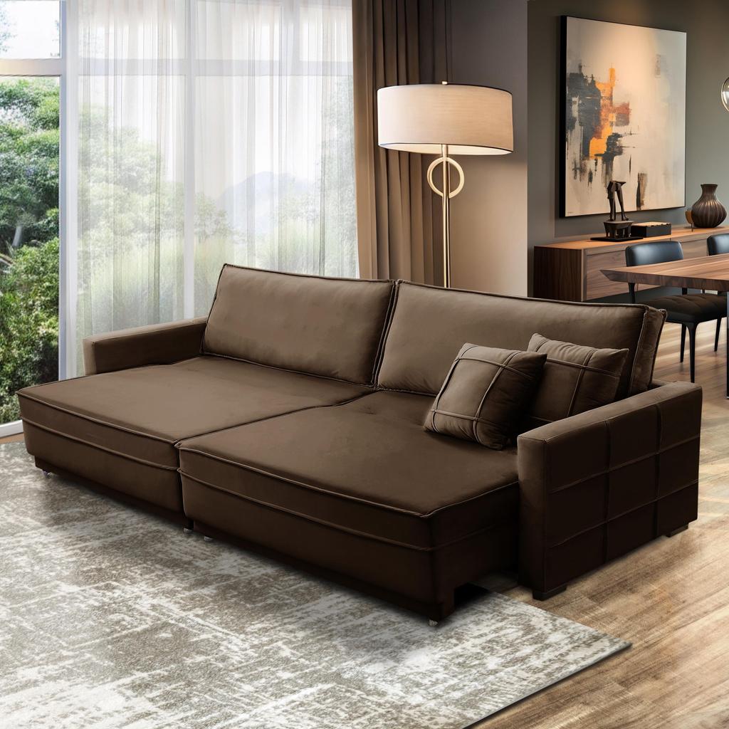 Sofá Sem Caixa Retrátil Reclinável 2,30m Karen Veludo Marrom Adonai Estofados