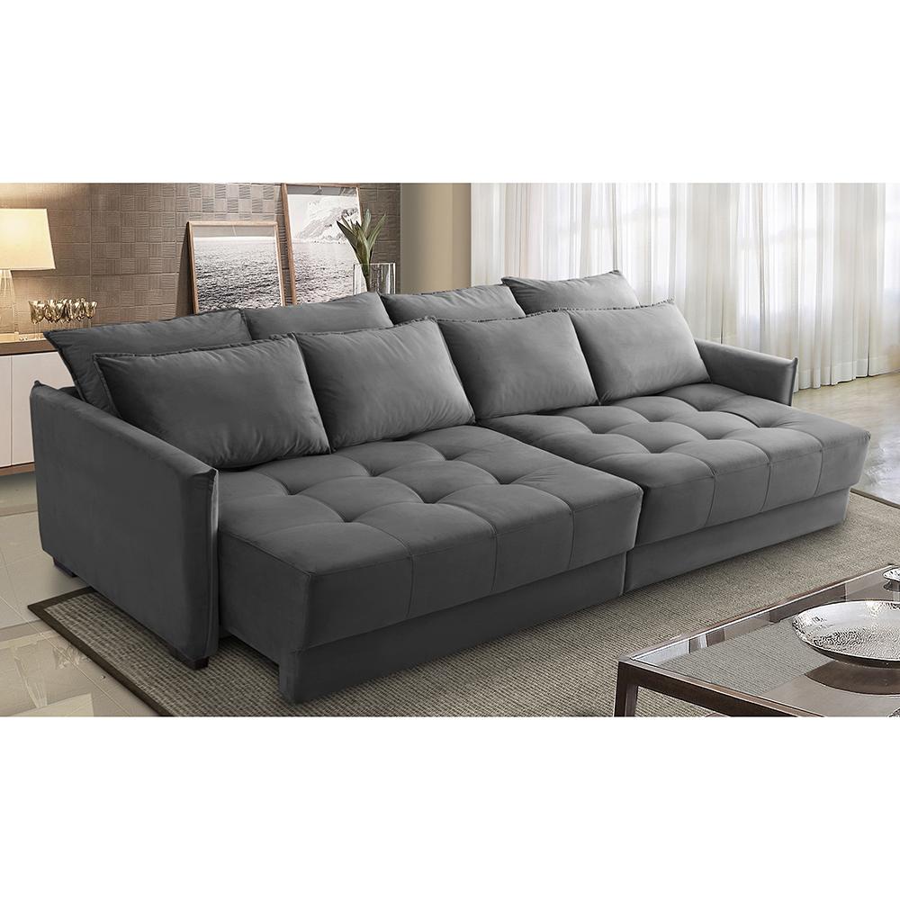 Sofá Sem Caixa Retrátil Reclinável 2,50m Carol Veludo Cinza Adonai Estofados