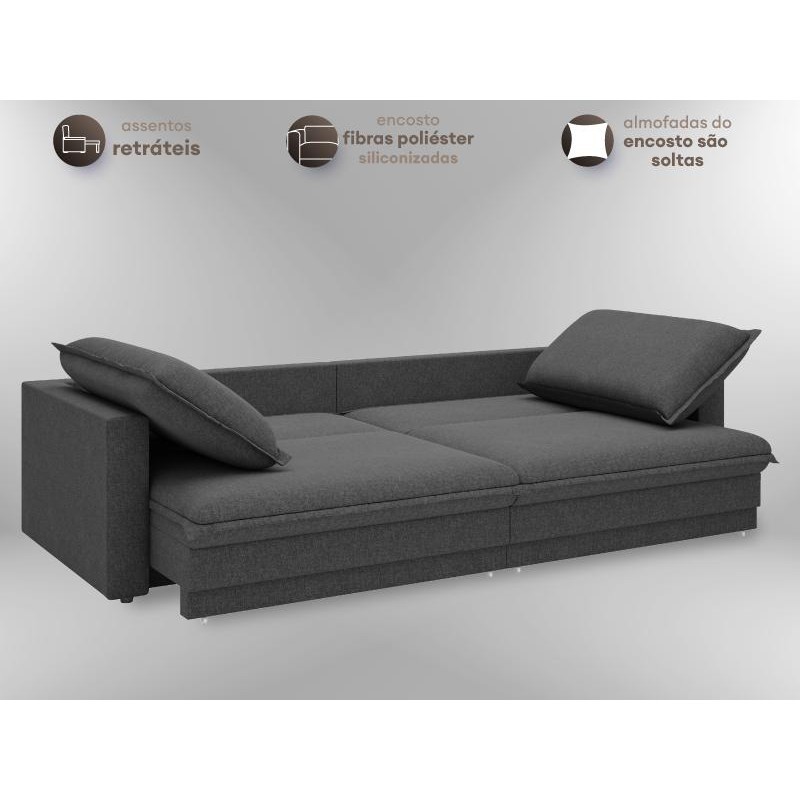 Exclusividade com requinte NETSOFAS. A sua sala de estar só está completa na presença do sofá Tango. Elegante e aconchegante ele é perfeito para passar horas e horas assistindo uma série ou lendo um livro. O design aposta na simplicidade do desenho e das formas, um sofá atual perfeito para ambientes contemporâneos. Eles é elaborado com materiais de alta qualidade que confere resistência e durabilidade ao produto. Feito para o uso diário. APROVEITE! INFORMAÇÕES TÉCNICAS: MATERIAL DA ESTRUTURA: Madeira Maciça de Eucalipto 100% de Reflorestamento, PRODUTO ECOLOGICAMENTE CORRETO. ENCHIMENTO DO ASSENTO: Espuma D-33, Manta Acrílica Siliconada, Percinta elástica E Mola Bonnel. ENCHIMENTO DO ENCOSTO: Flocos De Espuma, Fibra De Poliéster, Siliconada e Percinta elástica. FIXAÇÃO DA ESTRUTURA: Grampos Galvanizados Antiferrugem. REVESTIMENTO / TECIDO: LINHO SOFT. CHAISE: NÃO POSSUI. Inovador Sistema De Sofá sem caixa, com visual de fixo que vira retrátil e sem almofada se torna uma cama. Praticidade: modelo Bipartido, Facilitando O transporte Por corredores Estreitos E Escadas. MEDIDAS: ALTURA APROXIMADA: 102cm (Fechado) E 102cm (Aberto). LARGURA APROXIMADA: 200cm. PROFUNDIDADE APROXIMADA: 115CM (Fechado) E 145cm (Aberto). PESO APROXIMADO: 93kg. NECESSITA MONTAGEM: Não. NECESSITA MONTADOR ESPECIALIZADO: Não. Pode ser montado por uma pessoa sozinha. CAPACIDADE EM KG POR LUGAR: Aproximadamente 120kg. *Distribuídos igualmente sobre a área do assento. GARANTIA: Garantia legal de 90 dias contra defeitos de fabricação, a contar do recebimento do produto LIMPEZA: Aspirar o produto para eliminar a Poeira. Utilizar um pano levemente Umedecido com água e sabão neutro, seguindo de pano seco. Não limpar com escovas ou produtos abrasivos. RECOMENDAÇÕES DE MANUTENÇÃO: Usar em local seco, não molhar. Evitar a exposição ao Sol, para que o produto não sofra alterações na tonalidade. ATENÇÃO! A TONALIDADE DO PRODUTO PODE VARIAR ENTRE A IMAGEM DE EXIBIÇÃO E O ITEM FÍSICO. IMAGENS MERAMENTE ILUSTRATIVAS. NÃO NOS RESPONSABILIZAMOS PELA MONTAGEM/INSTALAÇÃO DOS PRODUTOS. -Os objetos que ambientam as fotos não acompanham o produto. - Verifique as dimensões do produto e certifique-se que o percurso que ele fará até o local de uso permite sua passagem. Nós não nos responsabilizamos por transporte de produtos, caso não caibam em elevadores, acima de três lances de escada e não cabendo na passagem das escadas, por içamentos ou desmontagens de produtos. Quaisquer despesas deste tipo ficam a cargo do cliente. -Reservamo-nos o direito de possíveis erros de digitação. Anúncio sujeito a alteração sem aviso prévio. -Antes da entrega, nossos produtos passam por um rigoroso controle de qualidade para que cheguem até o cliente em perfeitas condições, entretanto, em casos de desacordo com o proposto, o comprador deverá contatar o nosso sac e/ou a loja onde a compra foi efetuada. -O prazo para solucionar os problemas identificados é de até 30 dias úteis, contados a partir da data do posicionamento.