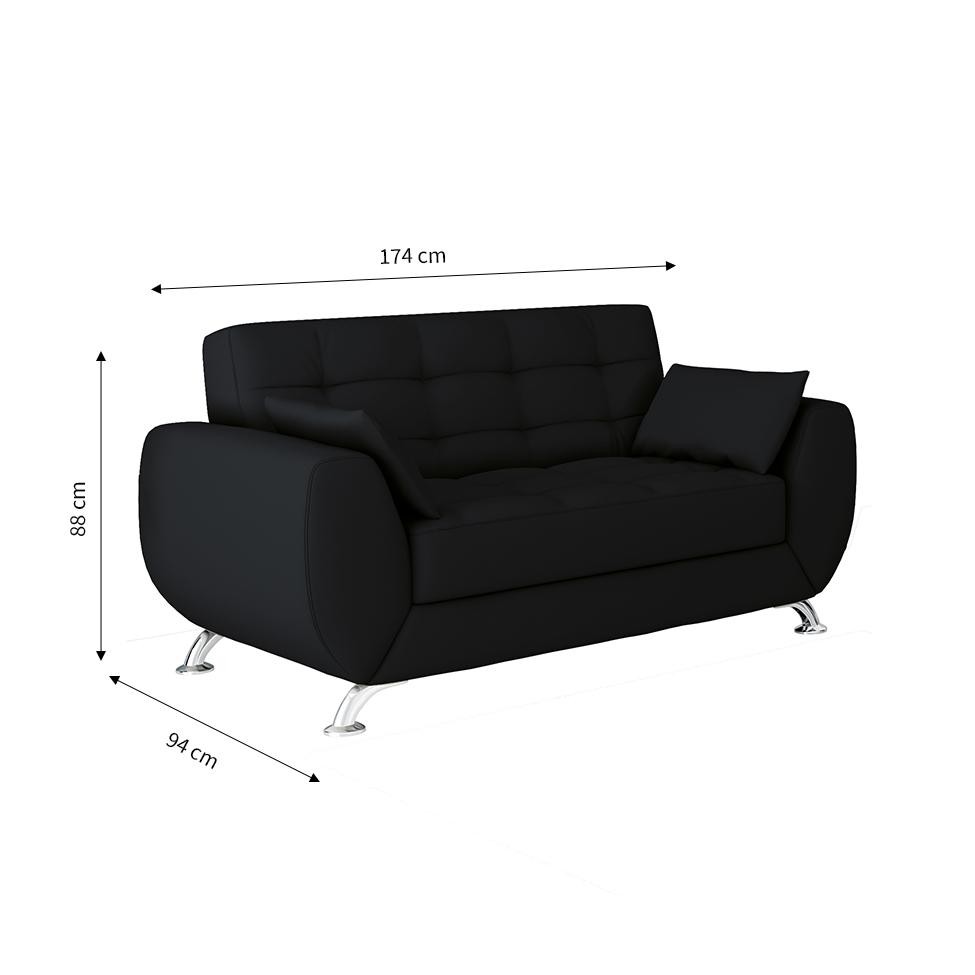 Que tal o Sofá Larissa?A sua sala de estar só está completa na presença de um bom sofá e nada mais gostoso do que receber a família ou curtir os seus momentos de descanso junto com o modelo Larissa! Pensado para quem quer aliar bom gosto + uma estrutura reforçada para o uso diário, a peça tem madeira reflorestada na composição e revestimento de toque agradável com o corpo para garantir que a receptividade seja plena. Já o visual elegante de coloração tradicional a esse tipo de móvel fecha com chave de ouro os benefícios que ele oferece para o seu doce lar ;) Cor: Preto Garantia em Meses: 3 Cores do Produto: Preto Instruções/Cuidados: Limpar com pano úmido com água. Conteúdo da Embalagem: 1 Sofá (Acompanha 2 almofadas) - Entregue em: 1 Volume Modelo: Comum Número de Volumes: 1 Material: O sofá Larissa tem sua estrutura em madeira reflorestada (eucalipto e pinus) e chapa OSB, com enchimento do assento em espuma D33 e encosto em D23, já o revestimento é revestimento sintético. Material para Filtro: Madeira de Reflorestamento Descrição do Tamanho: Altura: 88 cm | Largura: 174 cm | Profundidade: 94 cm Altura do Produto (cm): 88 Largura do Produto (cm): 174 Comprimento do Produto (cm): 94 Peso do Produto (Kg): 32 Produto precisa de Montagem?: Não Tipo de Encosto: Fixo Quantidade de Peças: 1 Tipo de pé: Fixo Altura do assento até o chão (cm): 46 Acompanha banco/puff: Não É giratório: Não Material da estrutura: Madeira de Reflorestamento Material do enchimento do assento: Espuma D33 Material do enchimento do encosto: Espuma D23 Material do Revestimento: Revestimento Sintético Possui Baú?: Não Tipo de assento: Fixo PROFUNDIDADE x LARGURA x ALTURA: 94 x 174 x 88 Fornecedor: Linoforte Móveis Ltda É com chaise: Não É de canto: Não É sofá-cama: Não Tipo de produto: Sofá Baterias são necessárias?: Não Certificação de teste externa: Não Componentes incluídos: Não Is Fragile: Não Número da peça: Não Produto: Sofá Tipo do Sofá: null Inclui manual de montagem: Não