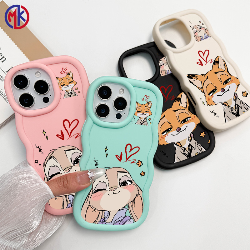 SoftCase Para iPhone 13 12 11 16 17 15 14 Pro Max XR 17Air Macaron Cor Caso Do Telefone Móvel Raposa Coelho MKcase