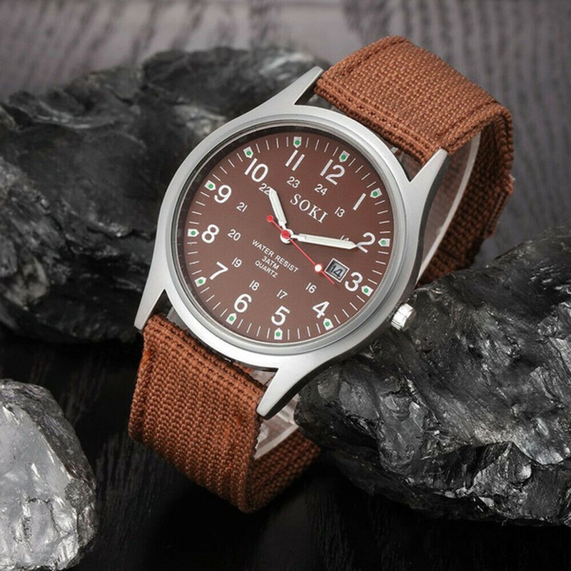 SOKI Moda Casual Masculino Relógio impermeável Brilhante Relógio Desportivo de Nylon Quartzo