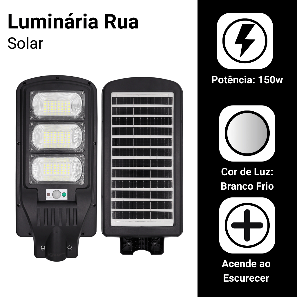 Solar Luminária Pública Poste Rua Led 150w Com Sensor Presença + Haste