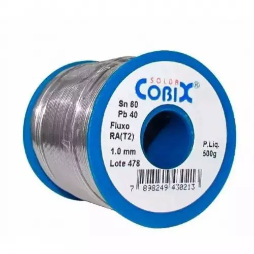 Solda Estanho 60x40 1mm C/ Fluxo Ra (T2) Rolo 500g Cobix