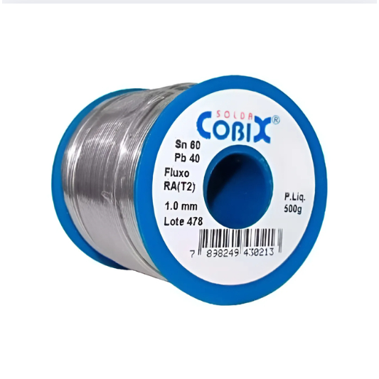 Solda Estanho 60x40 1mm Ra (T2) Com Fluxo Rolo 500g - Cobix