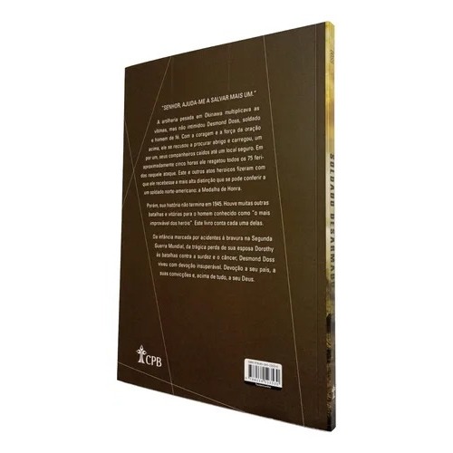 "Senhor, ajuda-me a salvar mais um." A artilharia pesada em Okinawa multiplicava as vítimas, mas não intimidou Desmond Doss, soldado e homem de fé. Com a coragem e a força da oração acima, ele se recusou a procurar abrigo e carregou, um por um, seus companheiros caídos até um local seguro. Em aproximadamente cinco horas ele resgatou todos os 75 feridos naquele ataque. Este e outros atos heroicos fizeram com que ele recebesse a mais alta distinção que se pode conferir a um soldado norte-americano: a Medalha de Honra. Porém, sua história não termina em 1945. Houve muitas outras batalhas e vitórias para o homem conhecido como "o mais improvável dos heróis". Este livro conta cada uma delas. Da infância marcada por acidentes à bravura na Segunda Guerra Mundial, da trágica perda de sua esposa Dorothy às batalhas contra a surdez e o câncer, Desmond Doss viveu com devoção insuperável. Devoção a seu país, a suas convicções e, acima de tudo, a seu Deus. Detalhes do produto Formato: 14,0x21,0 Número de páginas: 176 ISBN: 978-85-345-2353-0 Acabamento: Brochura