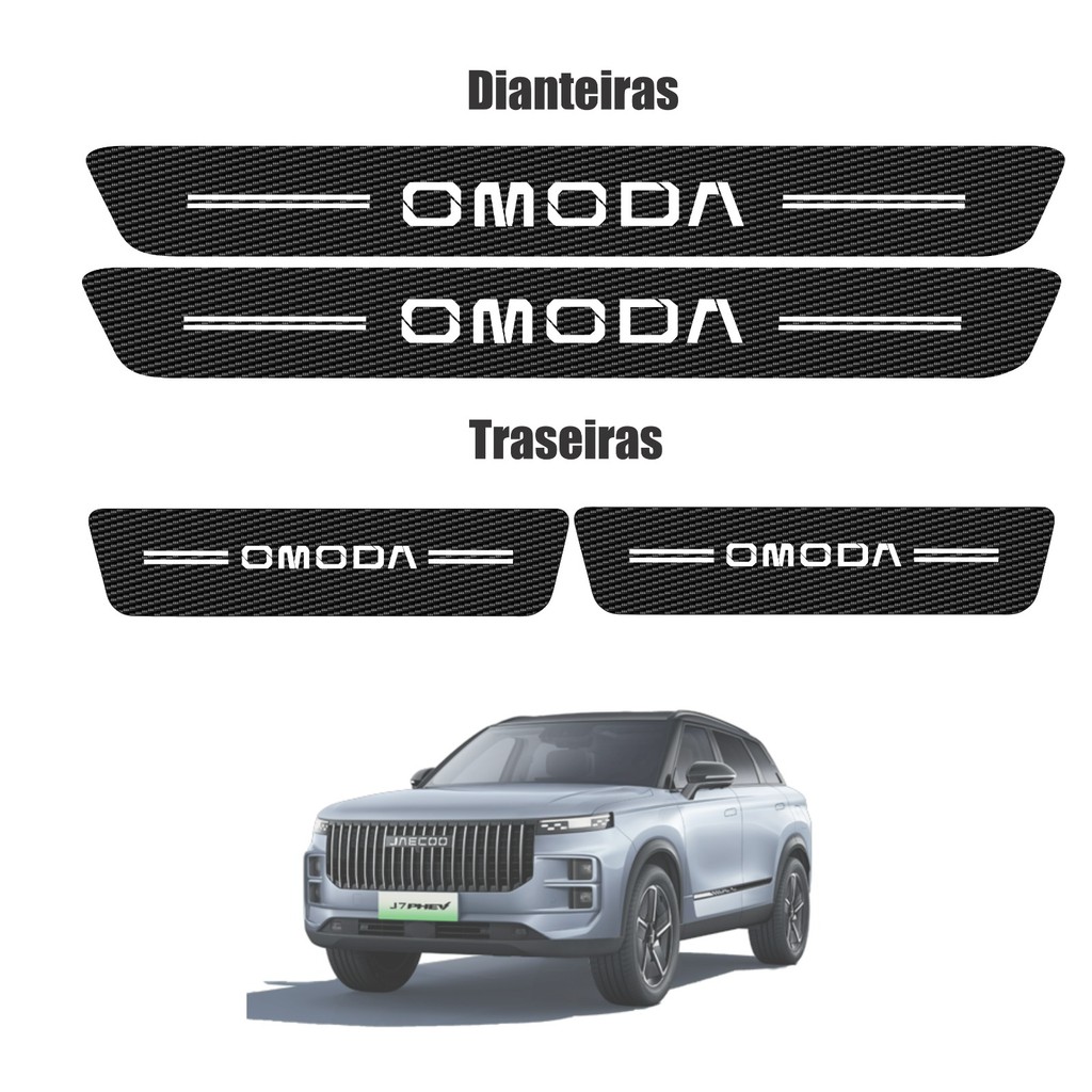 Soleira Automotiva kit 4 Portas Emblema OMODA Várias Marcas de Veículos Anti risco Fibra de Carbono