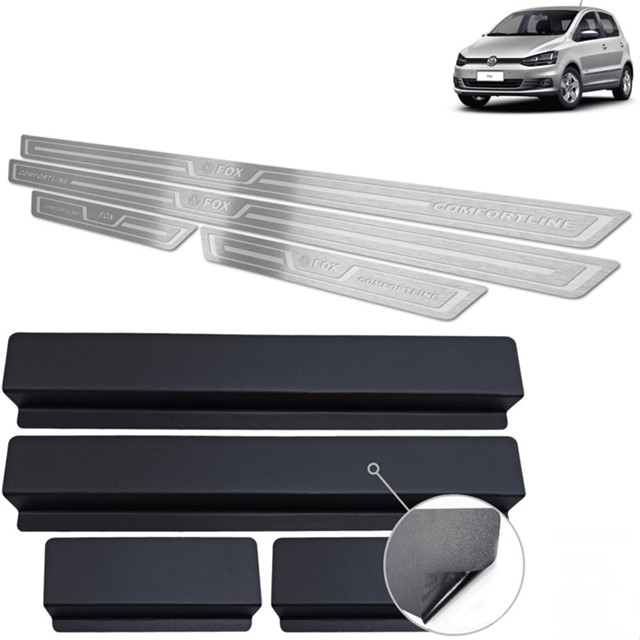 Gravação em relevo antiderrapante; Protege contra arranhões; Modelagem sob medida; Aparência esportiva e personalizada; Instalação simples feita em minutos; Vinil flexível que cobre mesmo bordas e ondulações; Vinil com acabamento anti-riscos; ITENS INCLUSOS: 2 soleiras para portas dianteiras 2 soleiras para portas traseiras 2 soleiras vinil para portas dianteiras 2 soleiras vinil para portas traseiras DESCRIÇÃO: Ao entrar e sair do veículo você, ou seus passageiros, acabam encostando os pés na área da soleira da porta. Isto acaba deixando riscos e arranhões na soleira do seu Fox Comfortline, fazendo com que esta seja uma das áreas de mais rápido desgaste no veículo. Pensando em solucionar este problema foi desenvolvida o protetor de soleira. Ele será instalada protegendo uma boa área da soleira, evitando que sofra desgastes. Você e seus passageiros poderão entrar e sair do seu carro sem preocupar-se ao pisar no local da soleira. O protetor de soleira também agrega estilo para seu Fox Comfortline. Ele conta com gravação personalizada em alto relevo, detalhes pintados na cor preto e rico acabamento escovado que protege contra arranhões. Fabricado em inox o protetor de soleira não enferruja ou perde o brilho. Devido ao seu material ele mantém aparência de novo por mais tempo. Esta peça também tem maior resistência ao atrito com os pés. Você mesmo pode fazer a instalação do seu protetor de soleira de portas. A área de aplicação é 100% autocolante o que elimina a possibilidade da entrada de sujeira por baixo da peça. VEÍCULOS COMPATÍVEIS: Volkswagen: • Fox 2015 4P • Fox 2016 4P • Fox 2017 4P • Fox 2018 4P • Fox 2019 4P • Fox 2020 4P • Fox 2021 4P • Fox 2022 4P DADOS TÉCNICOS SOLEIRA: Matéria prima: aço inox 430; Fita dupla face: 3M VHB; DADOS TÉCNICOS VINIL: Matéria prima: vinil auto-colante; GARANTIA: 1 ano