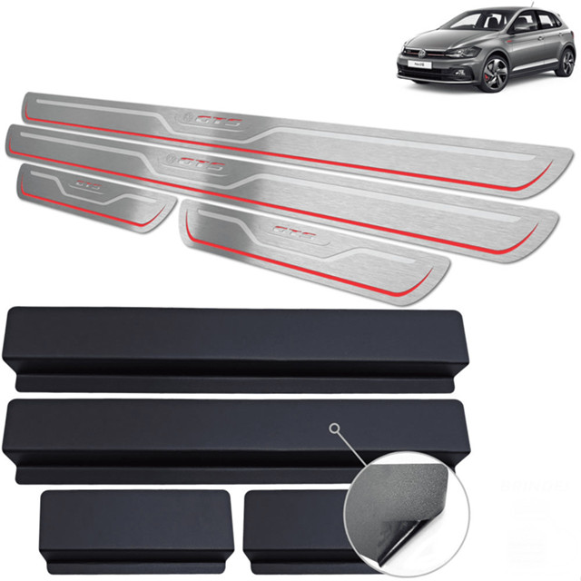 Gravação em relevo antiderrapante; Protege contra arranhões; Modelagem sob medida; Aparência esportiva e personalizada; Instalação simples feita em minutos; Vinil flexível que cobre mesmo bordas e ondulações; Vinil com acabamento anti-riscos; ITENS INCLUSOS: 2 soleiras para portas dianteiras 2 soleiras para portas traseiras 2 soleiras vinil para portas dianteiras 2 soleiras vinil para portas traseiras DESCRIÇÃO: Ao entrar e sair do veículo você, ou seus passageiros, acabam encostando os pés na área da soleira da porta. Isto acaba deixando riscos e arranhões na soleira do seu Polo GTS, fazendo com que esta seja uma das áreas de mais rápido desgaste no veículo. Pensando em solucionar este problema foi desenvolvida o protetor de soleira. Ele será instalada protegendo uma boa área da soleira, evitando que sofra desgastes. Você e seus passageiros poderão entrar e sair do seu carro sem preocupar-se ao pisar no local da soleira. O protetor de soleira também agrega estilo para seu Polo GTS. Ele conta com gravação personalizada em alto relevo, detalhes pintados na cor preto e rico acabamento escovado que protege contra arranhões. Fabricado em inox o protetor de soleira não enferruja ou perde o brilho. Devido ao seu material ele mantém aparência de novo por mais tempo. Esta peça também tem maior resistência ao atrito com os pés. Você mesmo pode fazer a instalação do seu protetor de soleira de portas. A área de aplicação é 100% autocolante o que elimina a possibilidade da entrada de sujeira por baixo da peça. VEÍCULOS COMPATÍVEIS: Volkswagen: • Polo 2018 todas as versões Posição: Dianteira • Polo 2019 todas as versões Posição: Dianteira • Polo 2020 todas as versões Posição: Dianteira • Polo 2021 todas as versões Posição: Dianteira • Polo 2022 todas as versões Posição: Dianteira DADOS TÉCNICOS SOLEIRA: Matéria prima: aço inox 430; Fita dupla face: 3M VHB; DADOS TÉCNICOS VINIL: Matéria prima: vinil auto-colante; GARANTIA: 1 ano