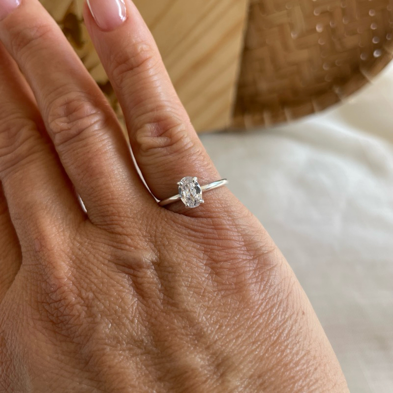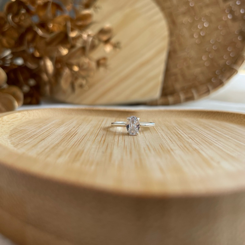 Solitário Namoro Oval Prata 925 Branco Cristal
